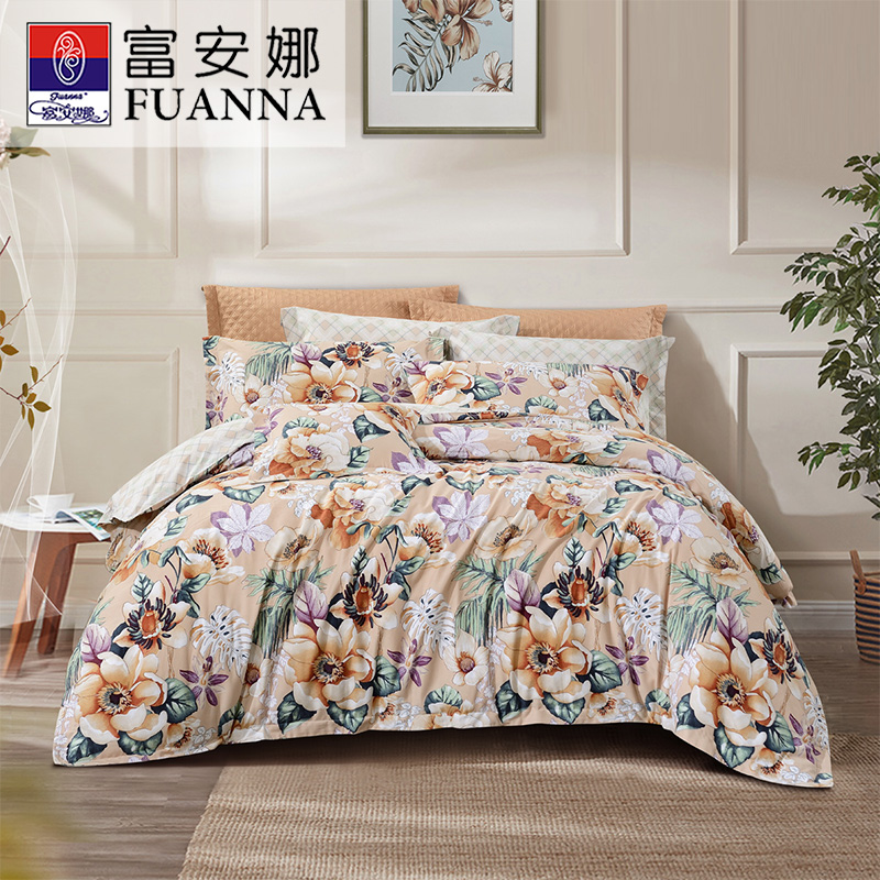 微薇向暖 床单四件套(被套1件床单1件枕套2件)(适合1.8米床)【纯棉磨毛/橙】