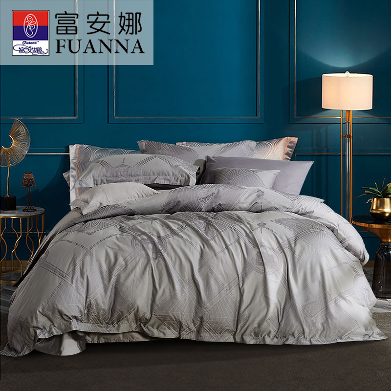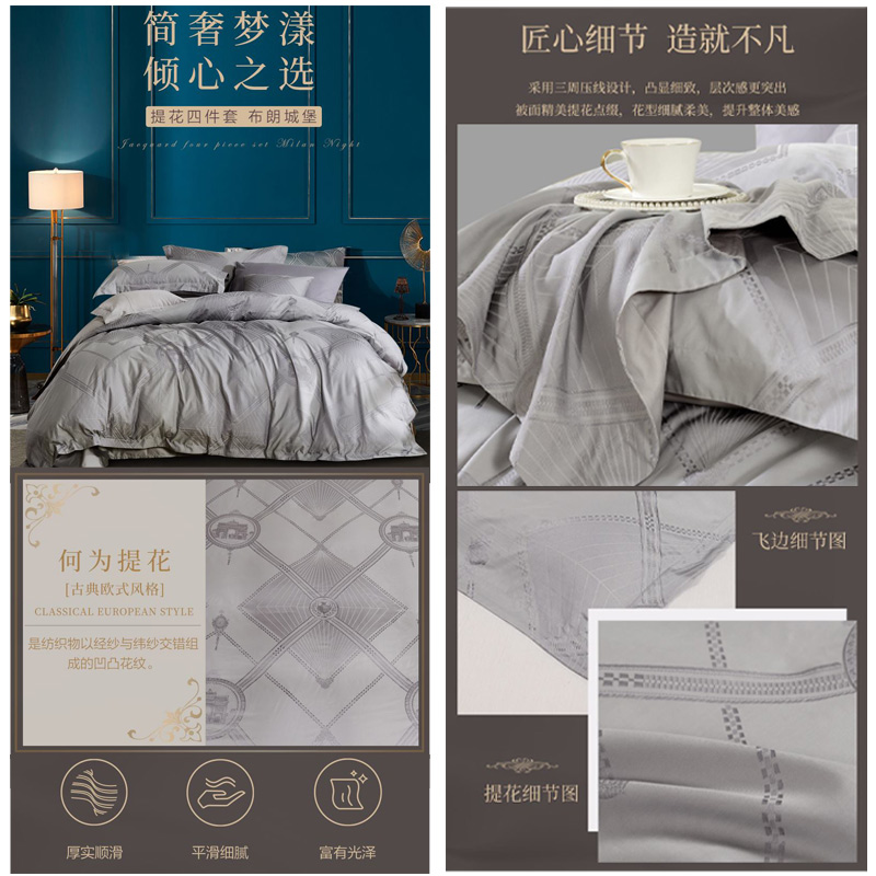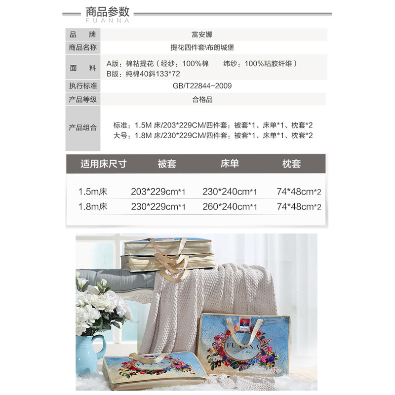 布朗城堡 床单四件套(被套1件床单1件枕套2件)(适合1.5米床)【A版:棉粘提花;B版:纯棉/灰】