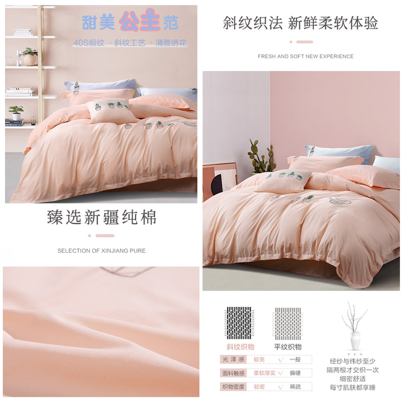 安琪乐园 床单四件套(被套1件床单1件枕套2件)(适合1.5米床)【纯棉/粉】