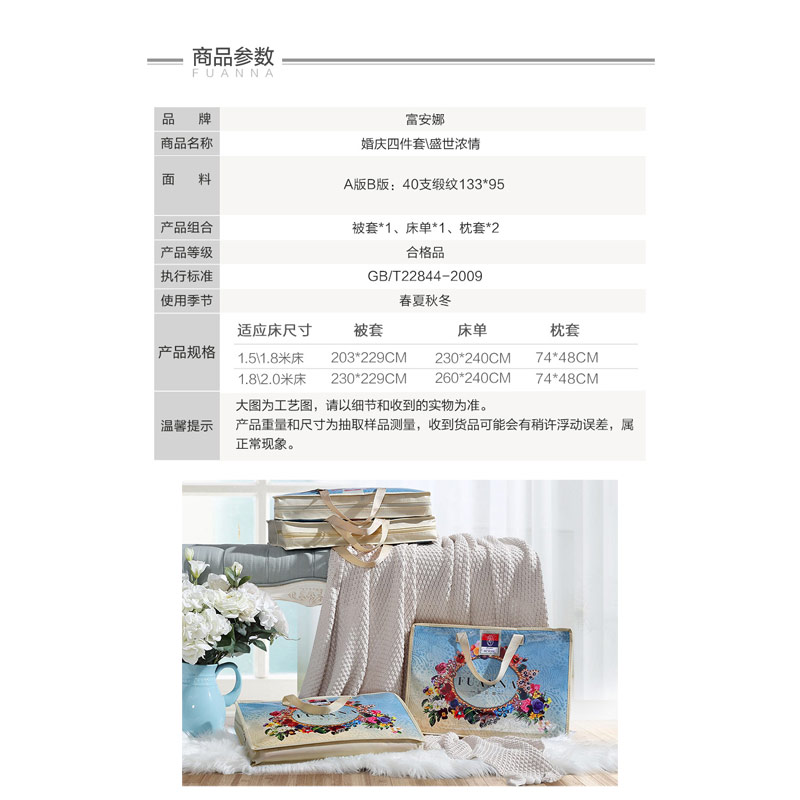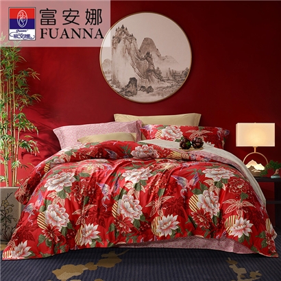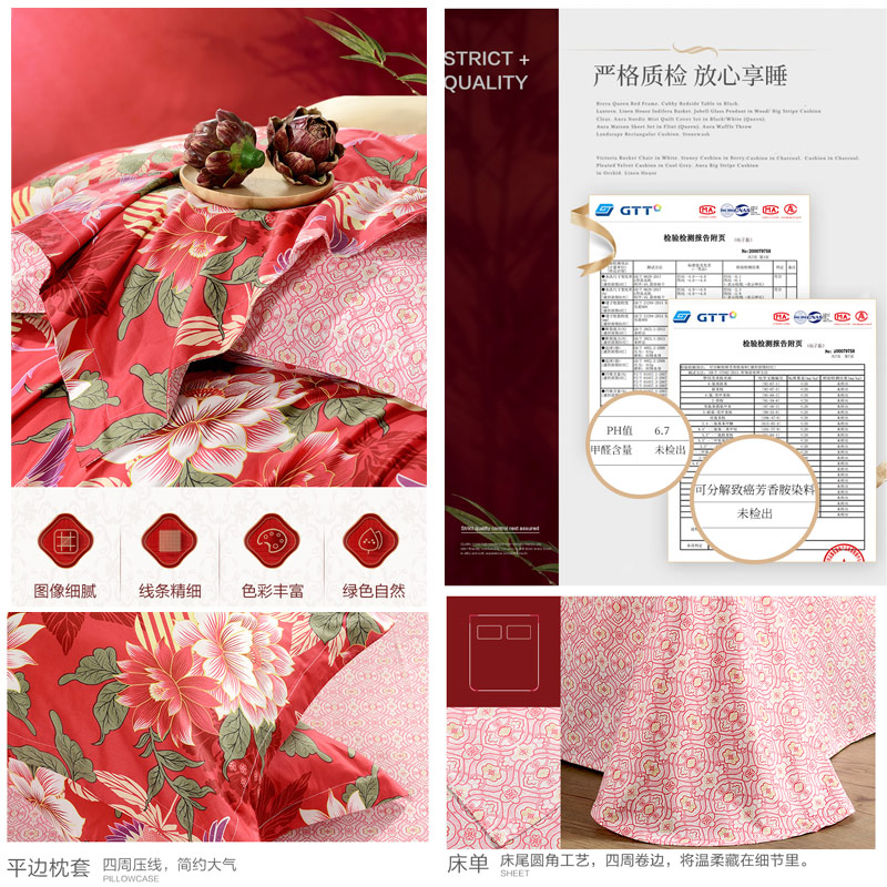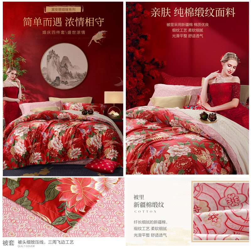 盛世浓情 床单四件套(被套1件床单1件枕套2件)(适合1.5米床)【纯棉缎纹/红】