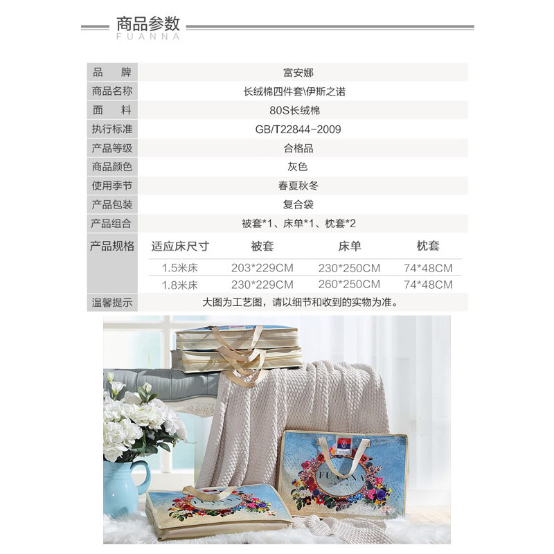 伊斯之诺 床单四件套(被套1件床单1件枕套2件)(适合1.5米床)【长绒棉/灰】