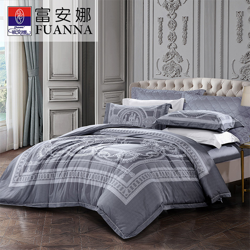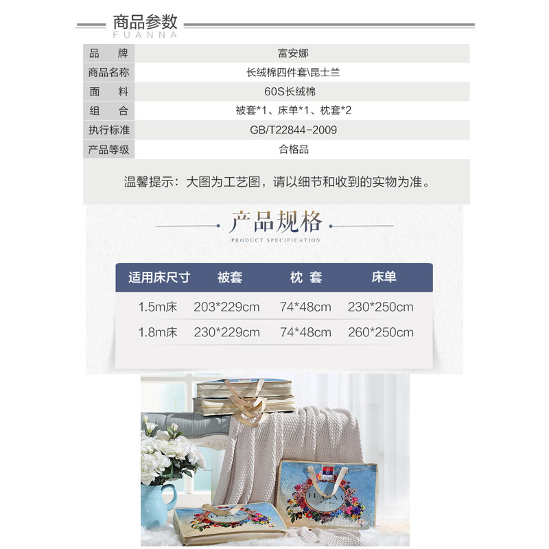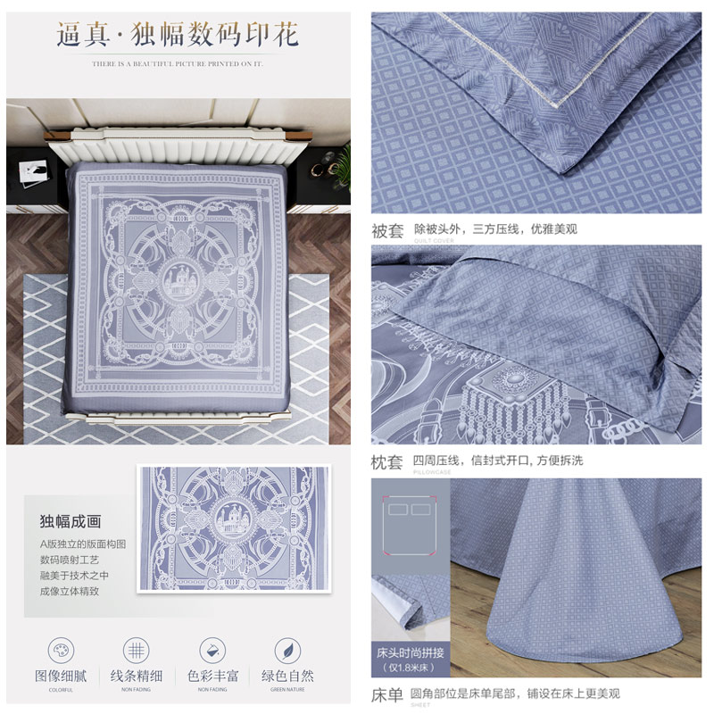 昆士兰 床单四件套(被套1件床单1件枕套2件)(适合1.8米床)【纯棉缎纹/蓝】