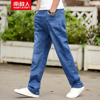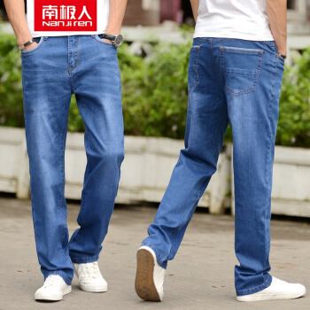 牛仔裤>>南极人牛仔裤男宽松直筒裤2020春夏季新款商务弹力工装休闲大码男裤加肥加大码牛仔长裤子 男 浅蓝色012# 31(2尺4)
