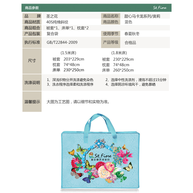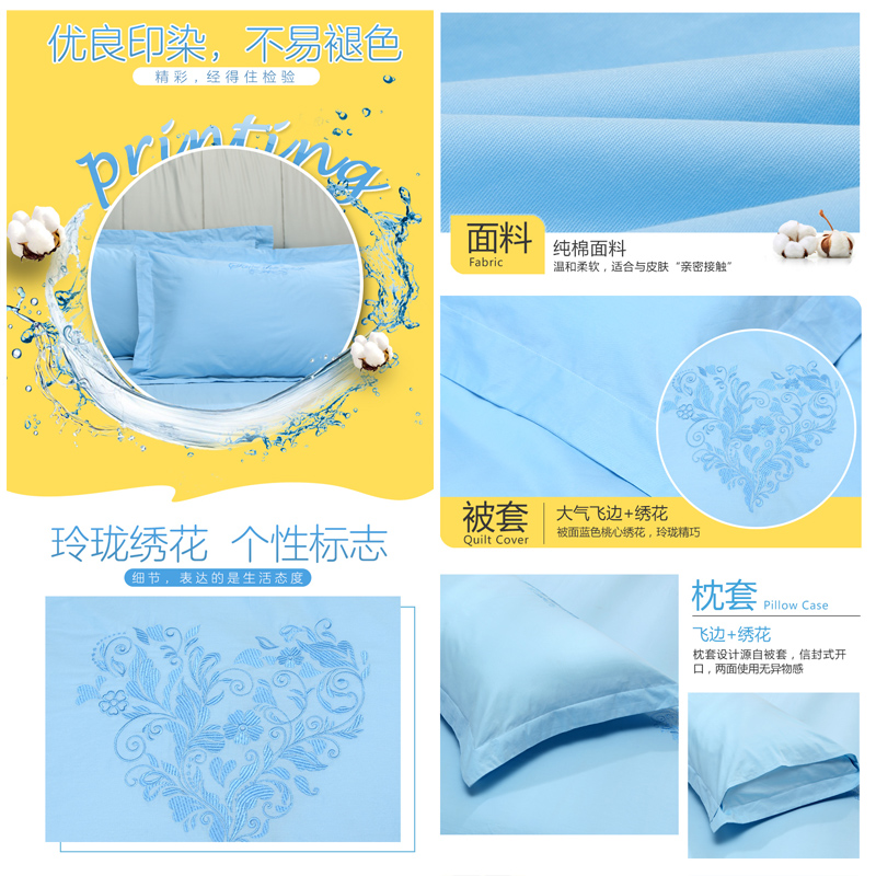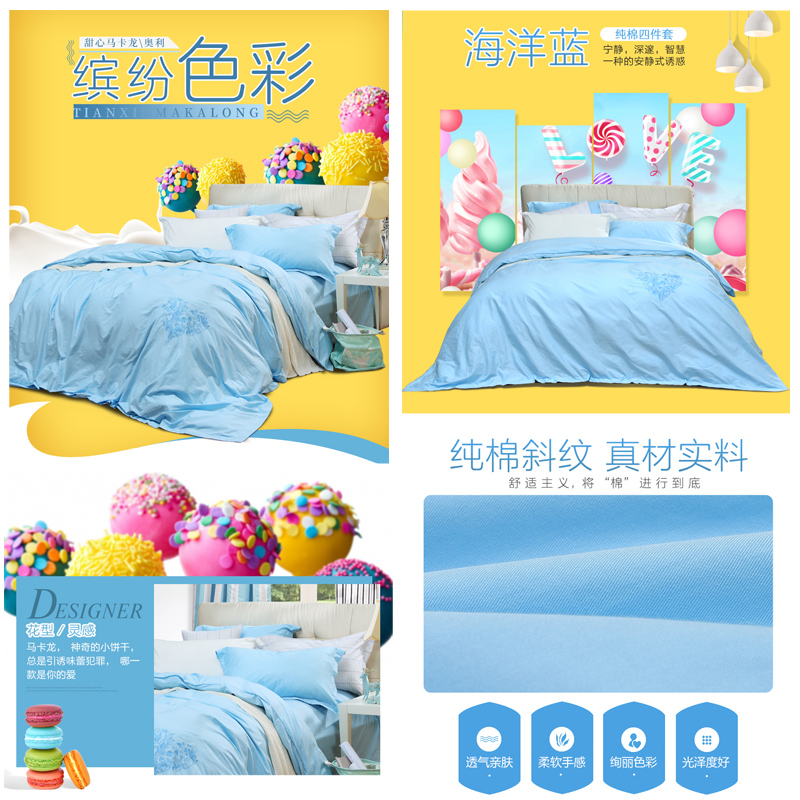 甜心马卡龙系列·奥莉 床单四件套(被套1件床单1件枕套2件)(适合1.8米床)【纯棉/蓝】