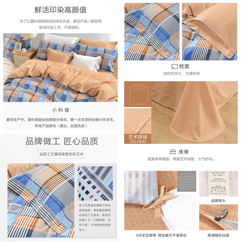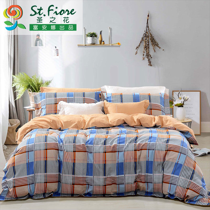 蓝调轻吟 床单四件套(被套1件床单1件枕套2件)(适合1.5米床)【纯棉磨毛/蓝】