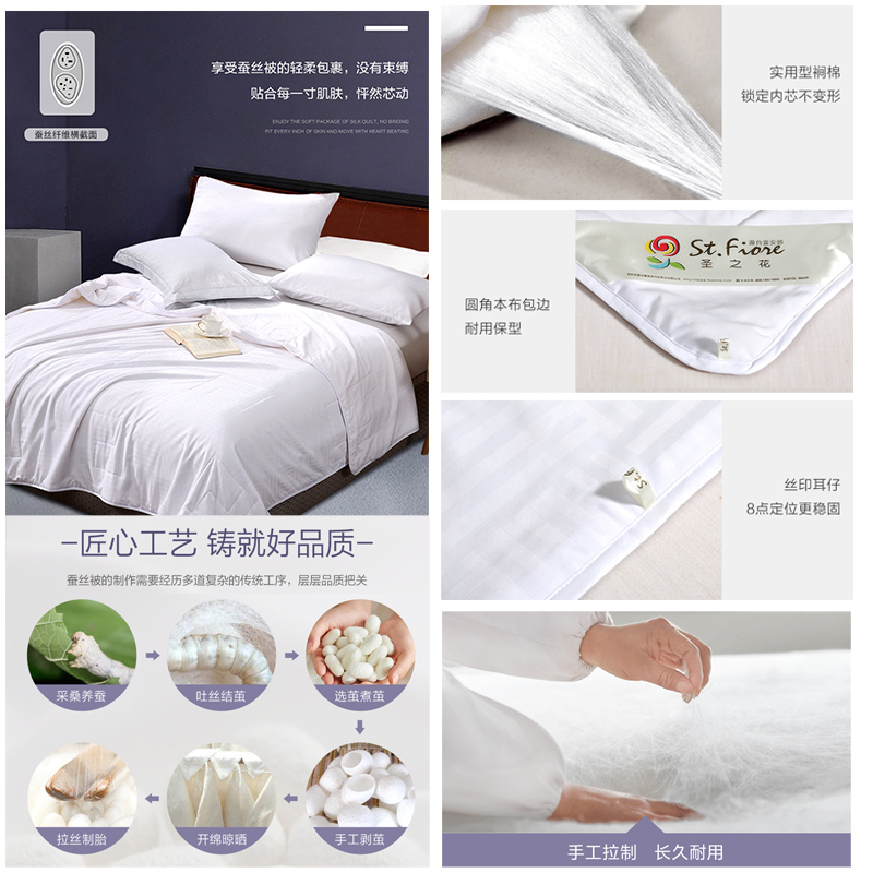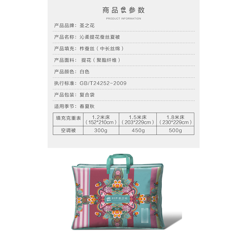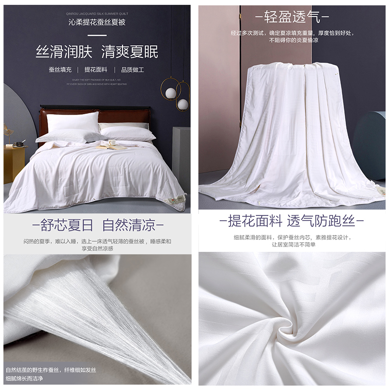 沁柔提花蚕丝夏被(被子1件)(适合1.2米床)【面料:聚酯纤维;填充:柞蚕丝(中长丝绵)/白】