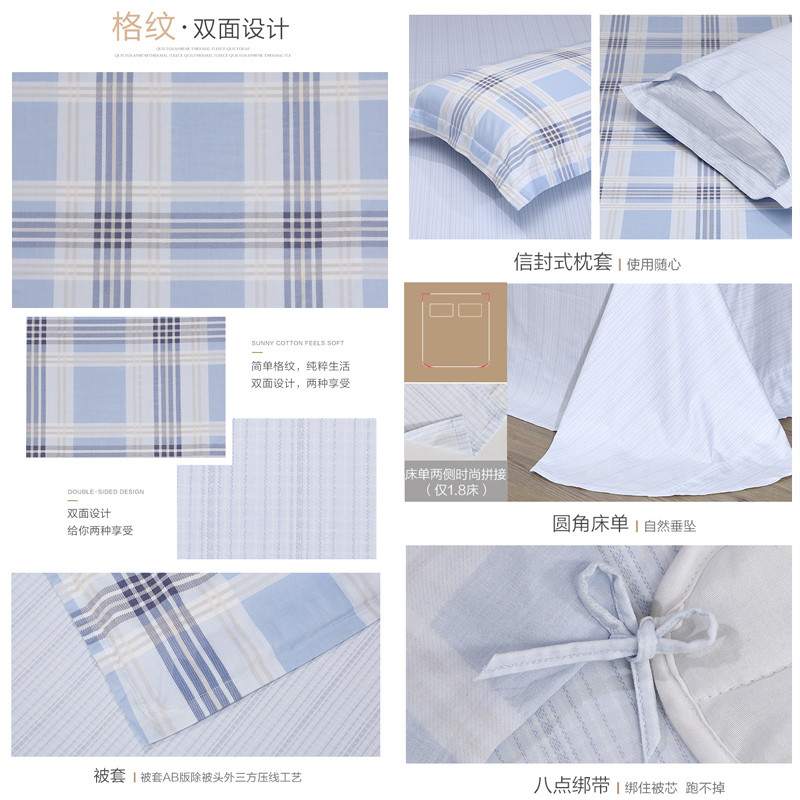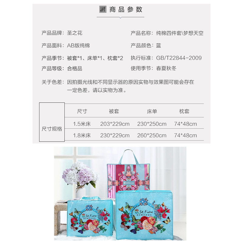 梦想天空 床单四件套(被套1件床单1件枕套2件)(适合1.8米床)【纯棉/蓝】