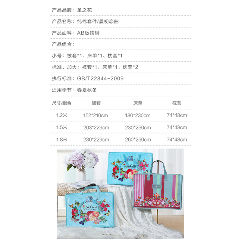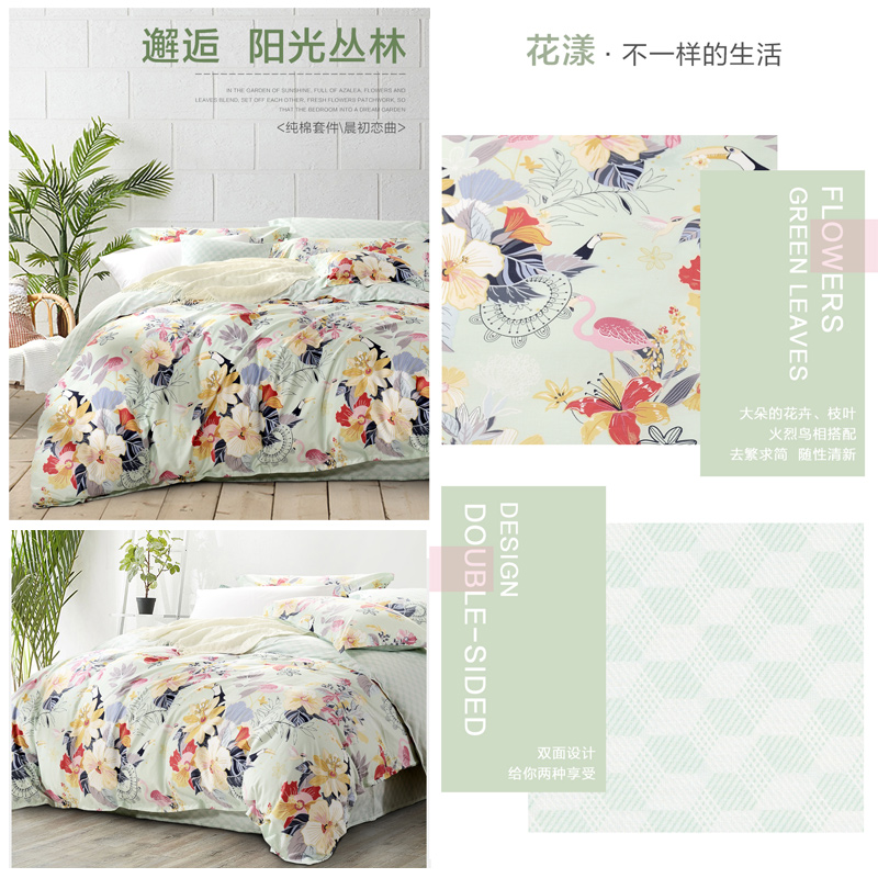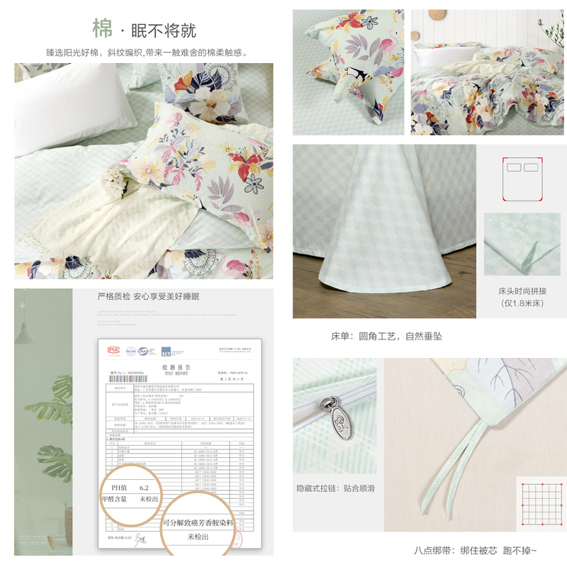 晨初恋曲 床单三件套(被套1件床单1件枕套1件)(适合1.2米床)【纯棉/绿】