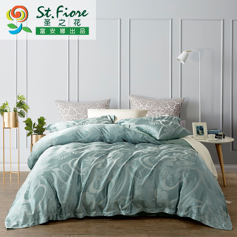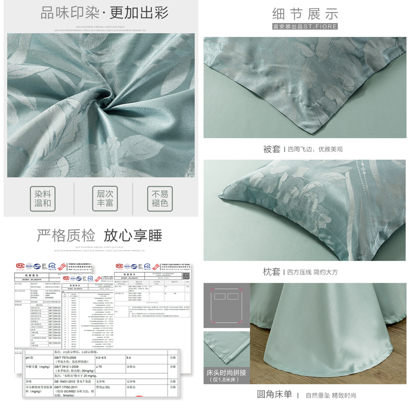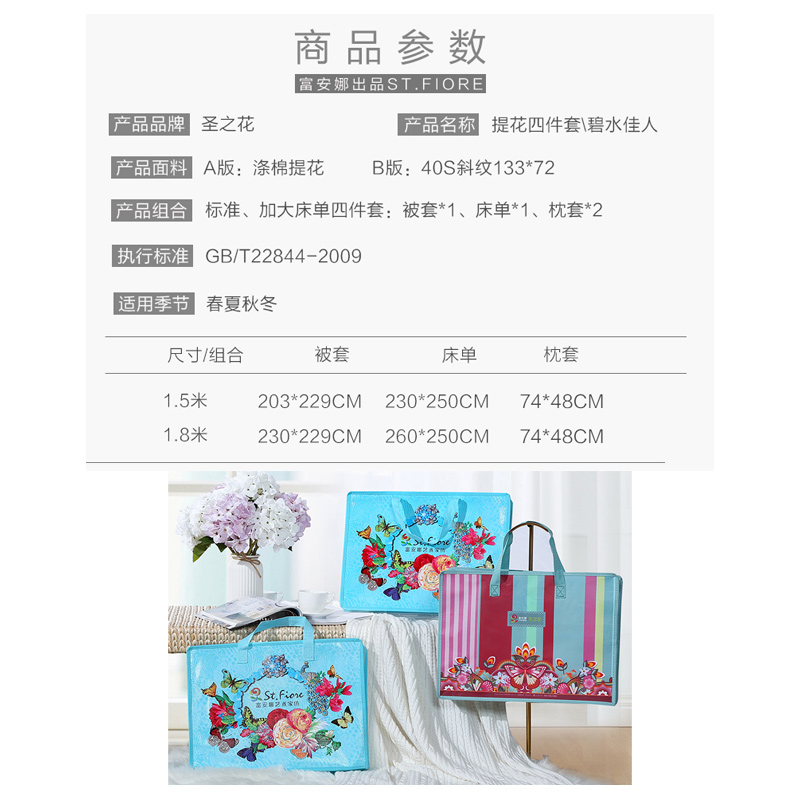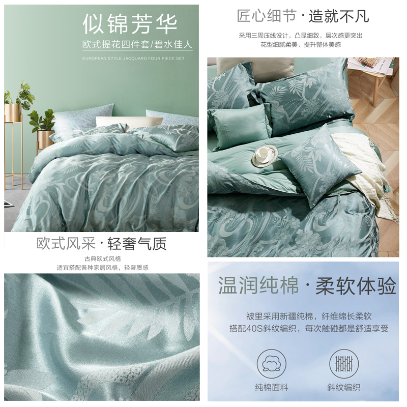碧水佳人 床单四件套(被套1件床单1件枕套2件)(适合1.5米床)【A版:涤棉提花;B版:纯棉/绿】