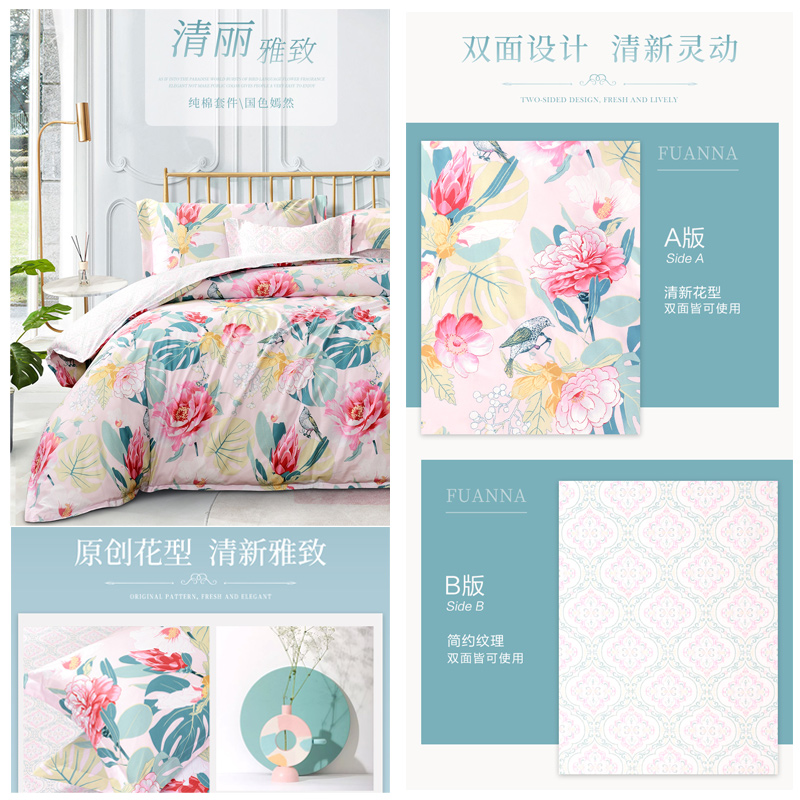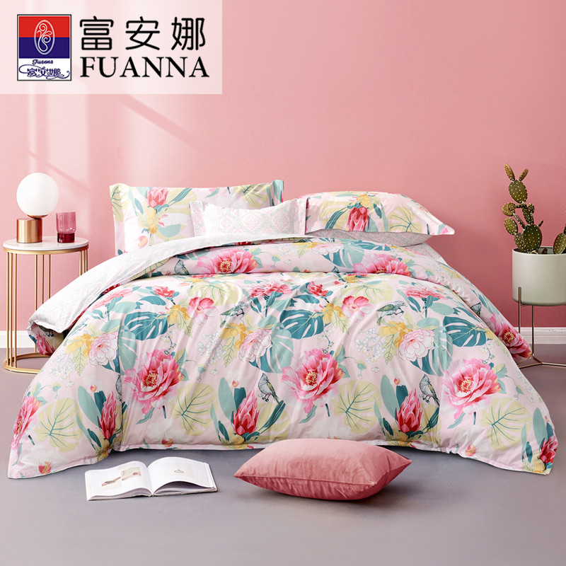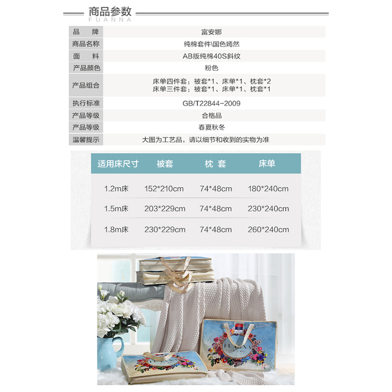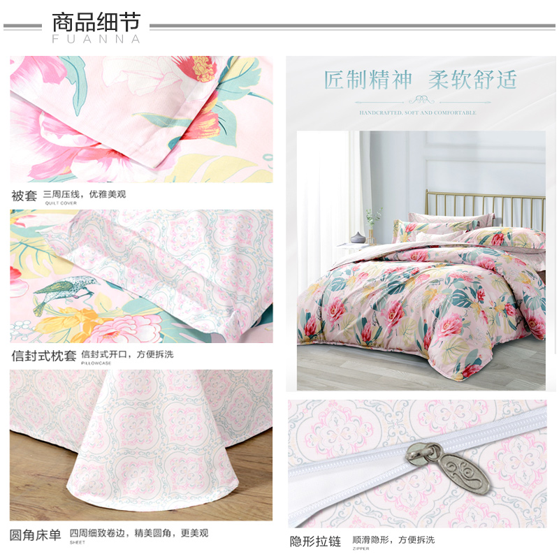 国色嫣然 床单三件套(被套1件床单1件枕套1件)(适合1.2米床)【纯棉/粉】