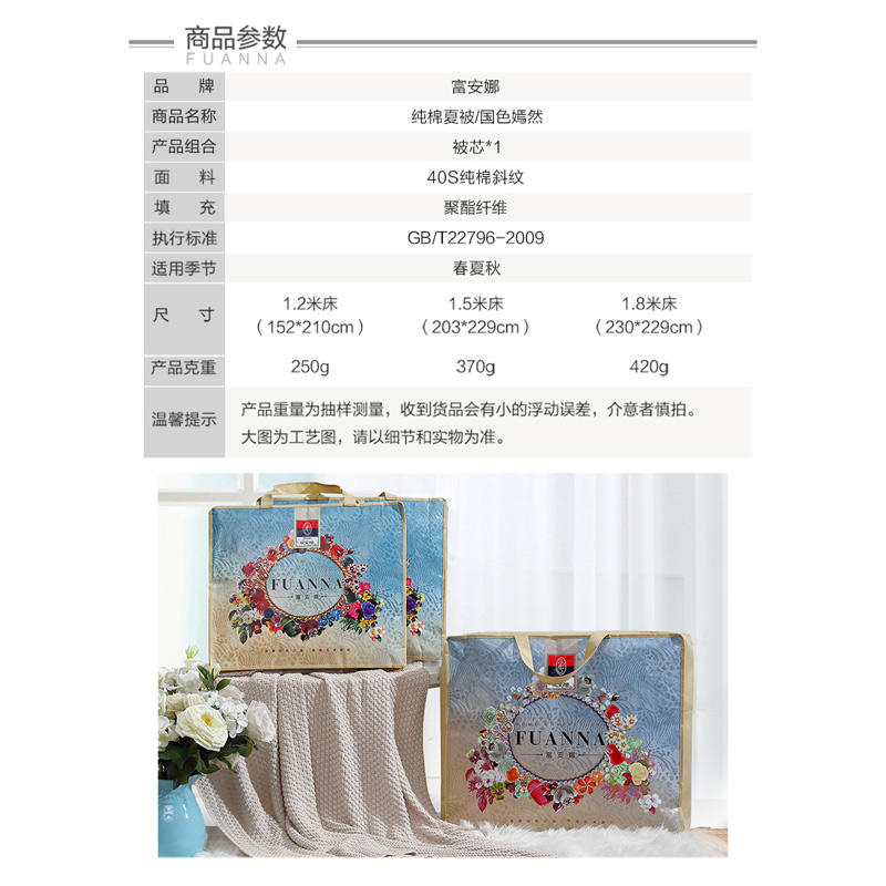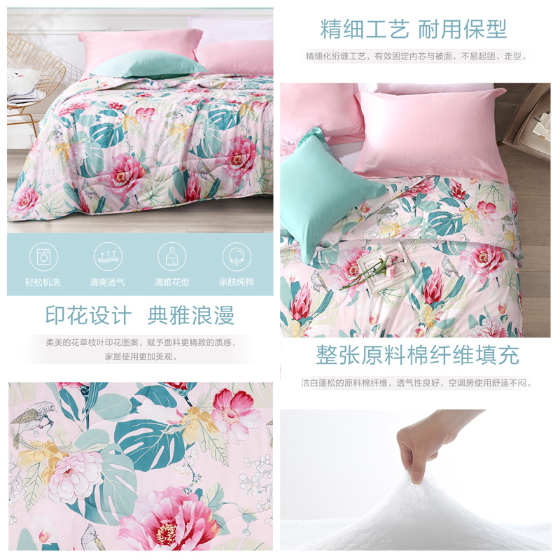 国色嫣然 纯棉印花夏被(被芯1件)(适合1.2米床)【面料:纯棉;填充:聚酯纤维/蓝】