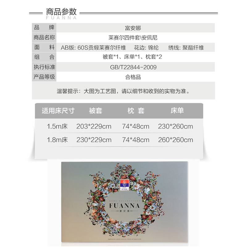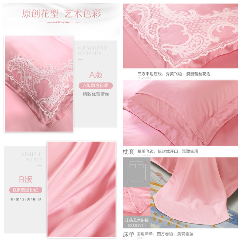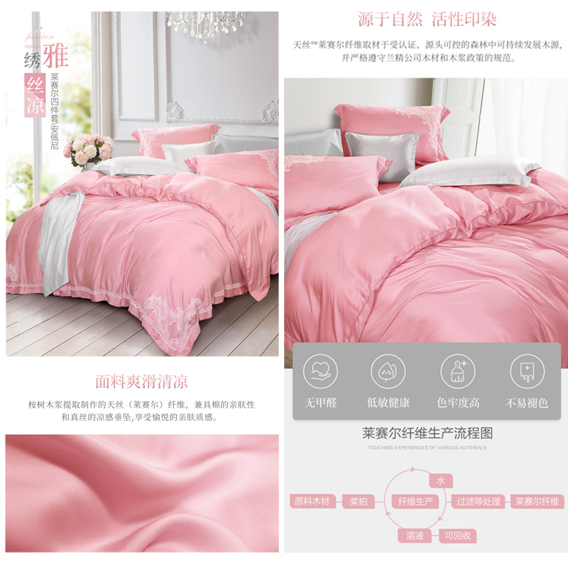 安佩尼 床单四件套(被套1件床单1件枕套2件)(适合1.8米床)【莱赛尔纤维/粉】
