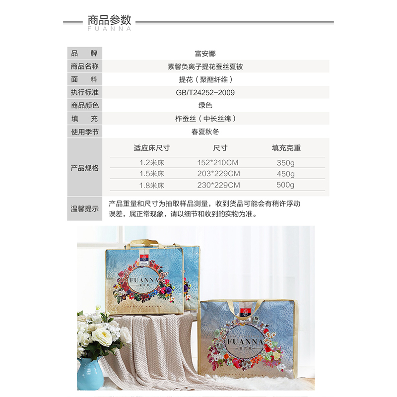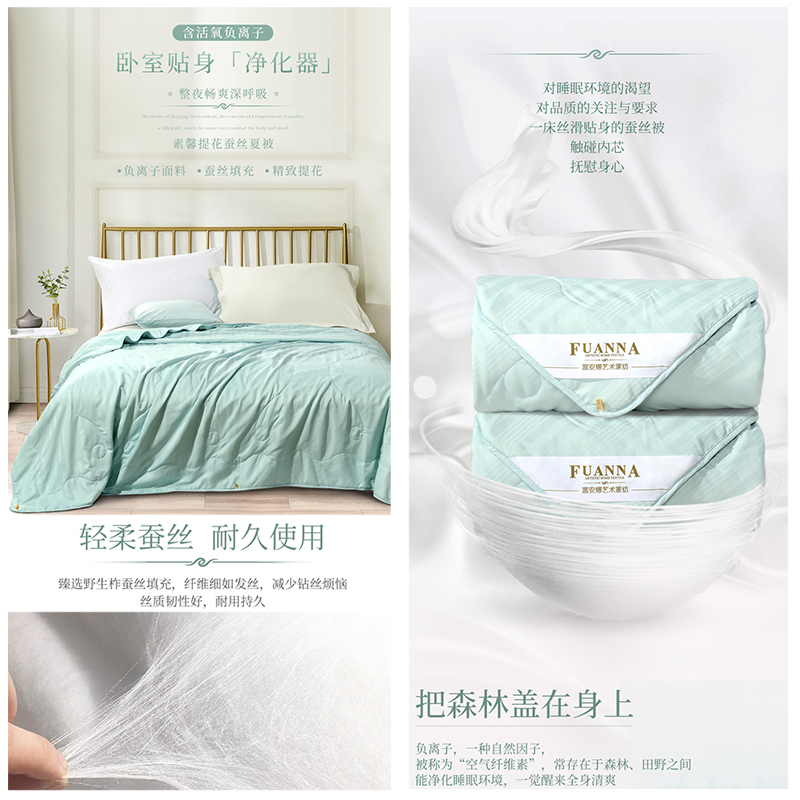 素馨负离子提花蚕丝夏被(夏被1件)(适合1.5米床)【面料:聚酯纤维;填充:柞蚕丝(中长丝绵)/绿】