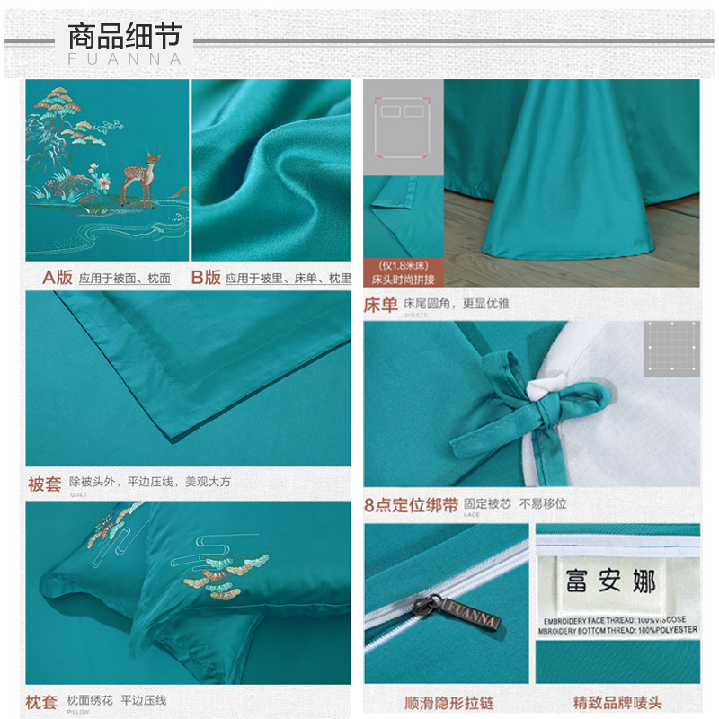 千里江山 床单四件套(被套1件床单1件枕套2件)(适合1.8米床)【精梳棉/绿】