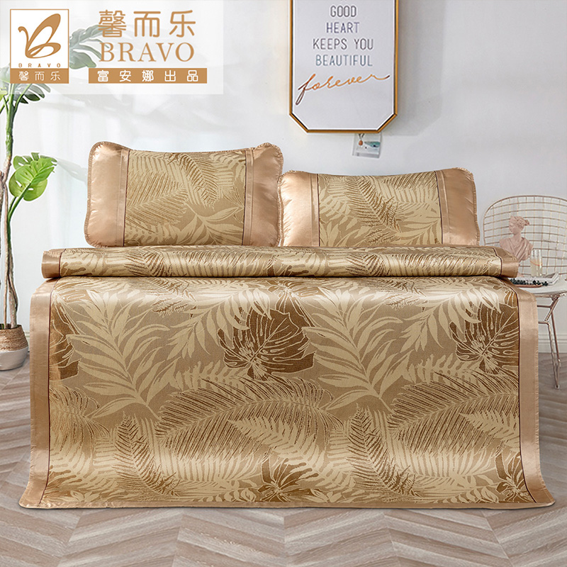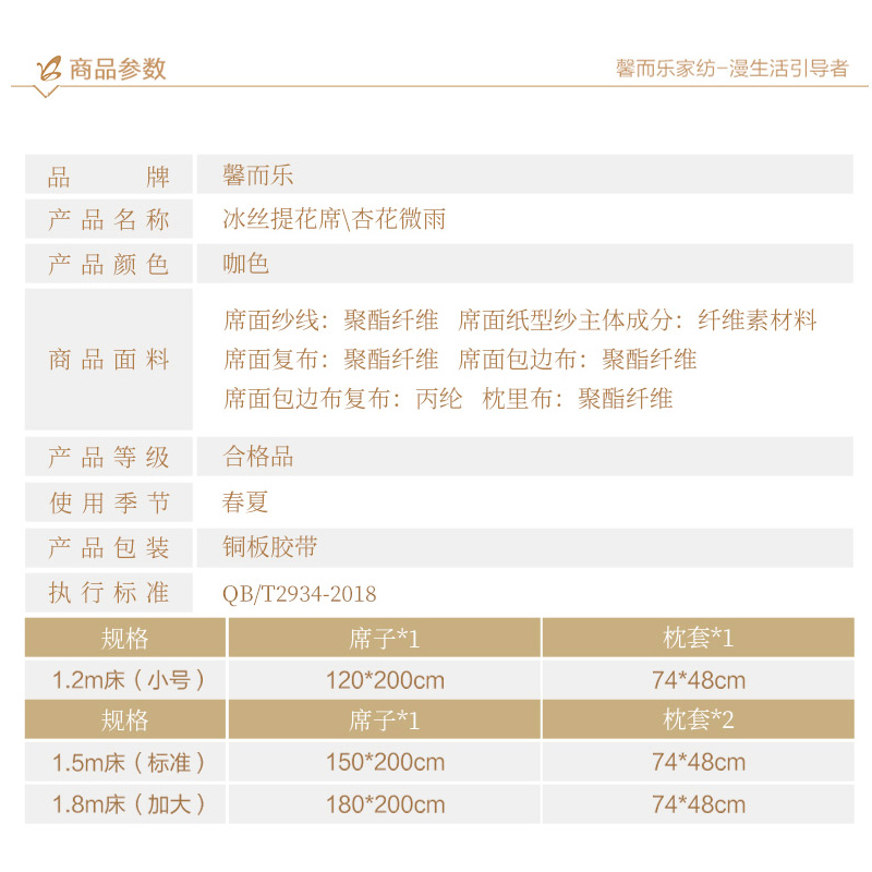 杏花微雨 冰丝提花席三件套(凉席1件枕套2件)(适合1.8米床)【聚酯纤维+纤维素材了/咖】