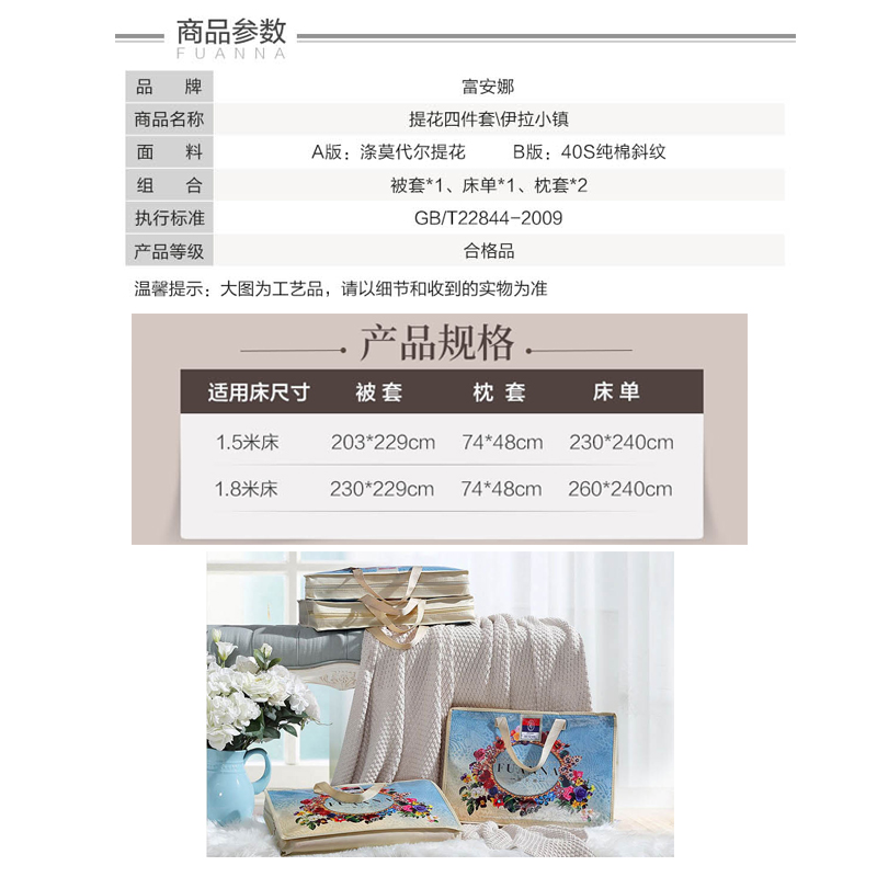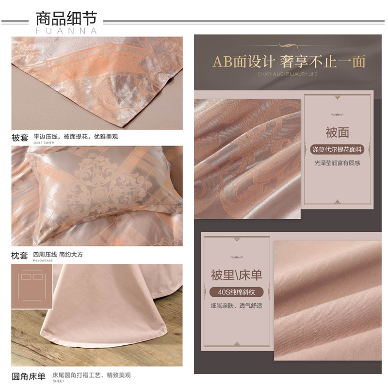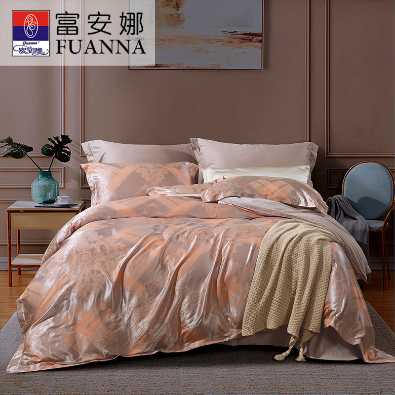 伊拉小镇 床单四件套(被套1件床单1件枕套2件)(适合1.5米床)【涤莫代尔提花+纯棉/浅咖】