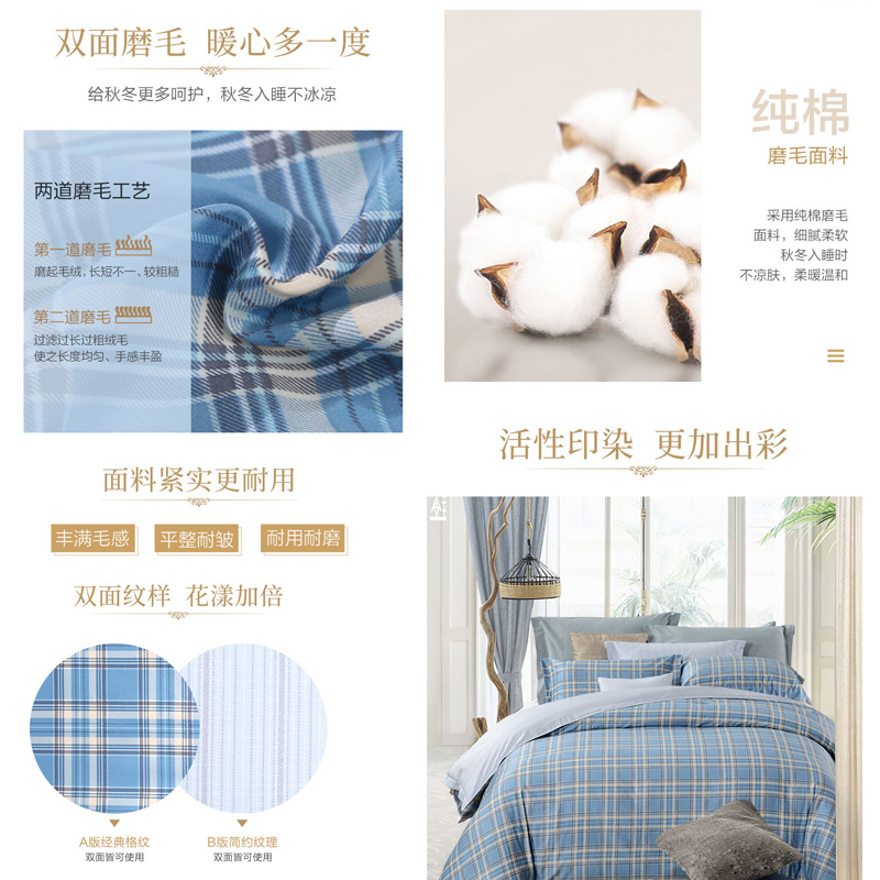怀特之约床笠四件套(被套1件床笠1件枕套2件)(适合1.8米床)【纯棉磨毛/蓝色】