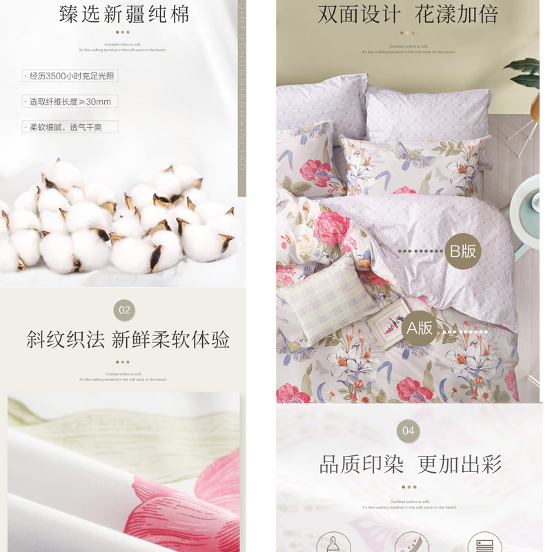 花舞悠然 床单三件套(被套1件床单1件枕套1件)(适合1.2米床)【纯棉/粉色】