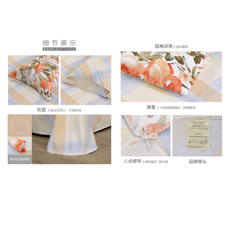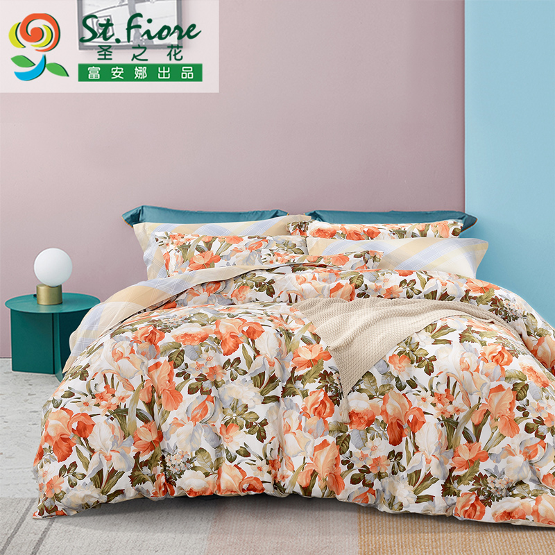 安暖如夏 床单四件套(被套1件床单1件枕套2件)(适合1.5米床)【纯棉磨毛/橙】
