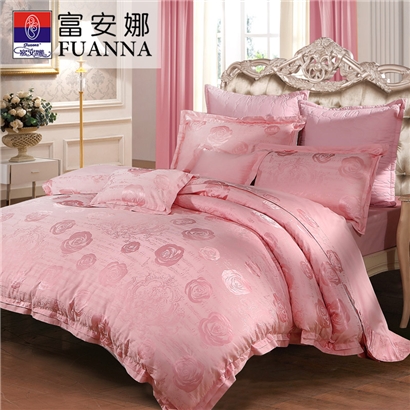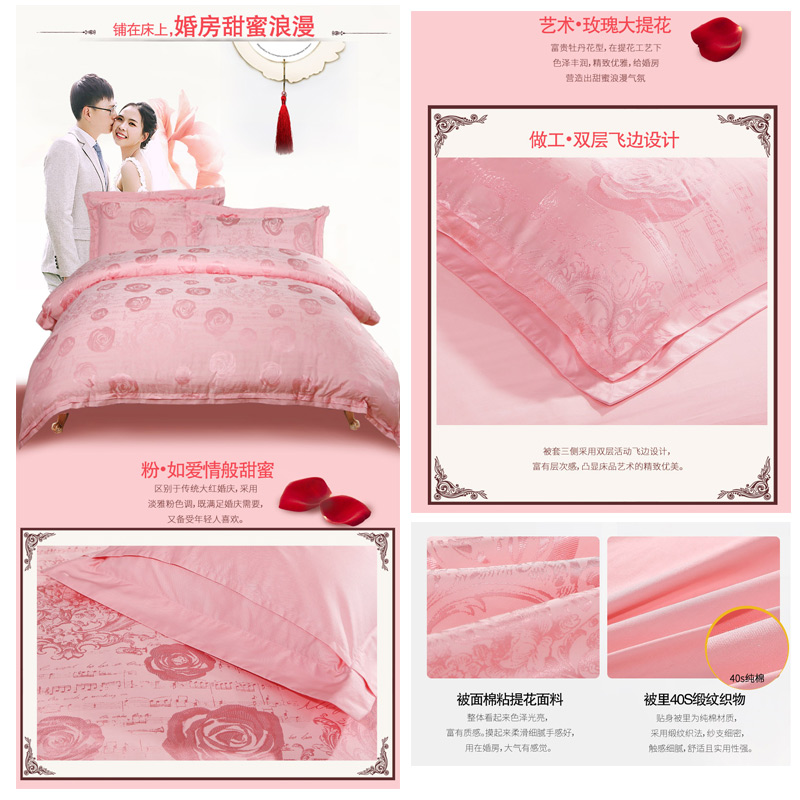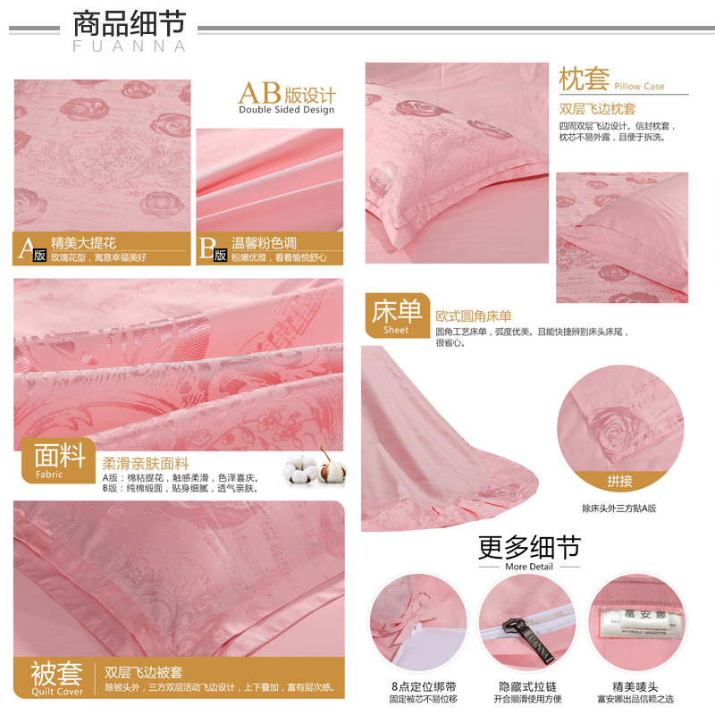 床上套件>>献给爱丽丝 床单四件套(被套1件床单1件枕套2件)(适合1.5米床)【棉粘提花/粉】