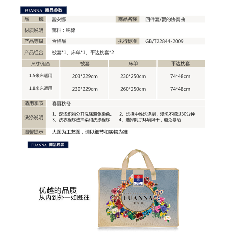 爱的协奏曲 床单四件套(被套1件床单1件枕套2件)(适合1.5米床)【棉/粉】