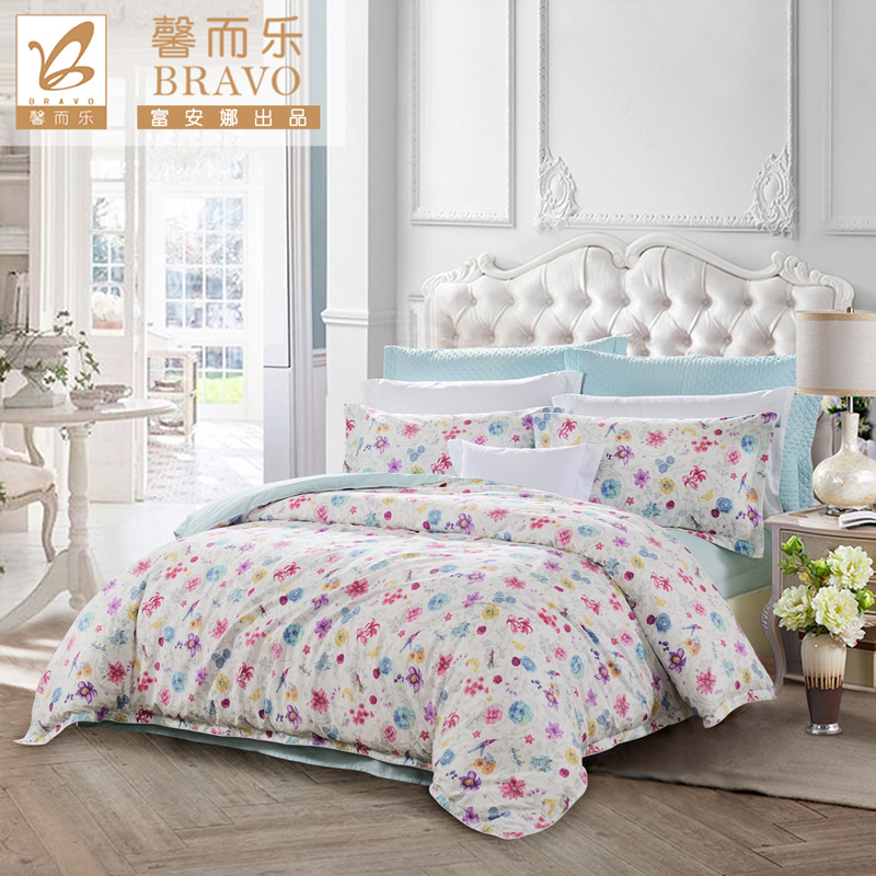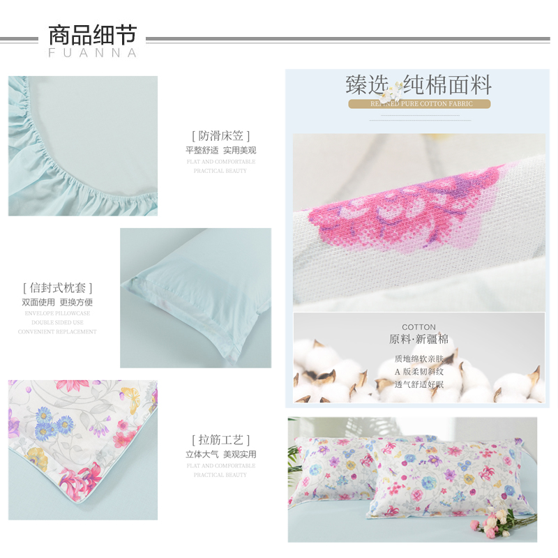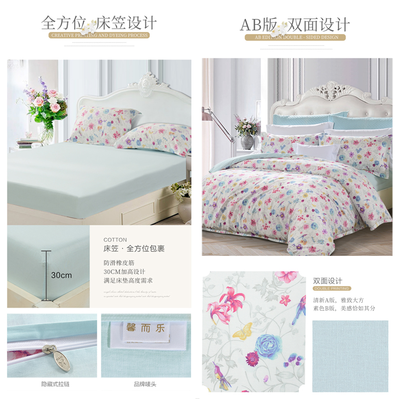 花恋初语 床笠四件套(被套1件床笠1件枕套2件)(适合1.8米床)【纯棉/蓝】