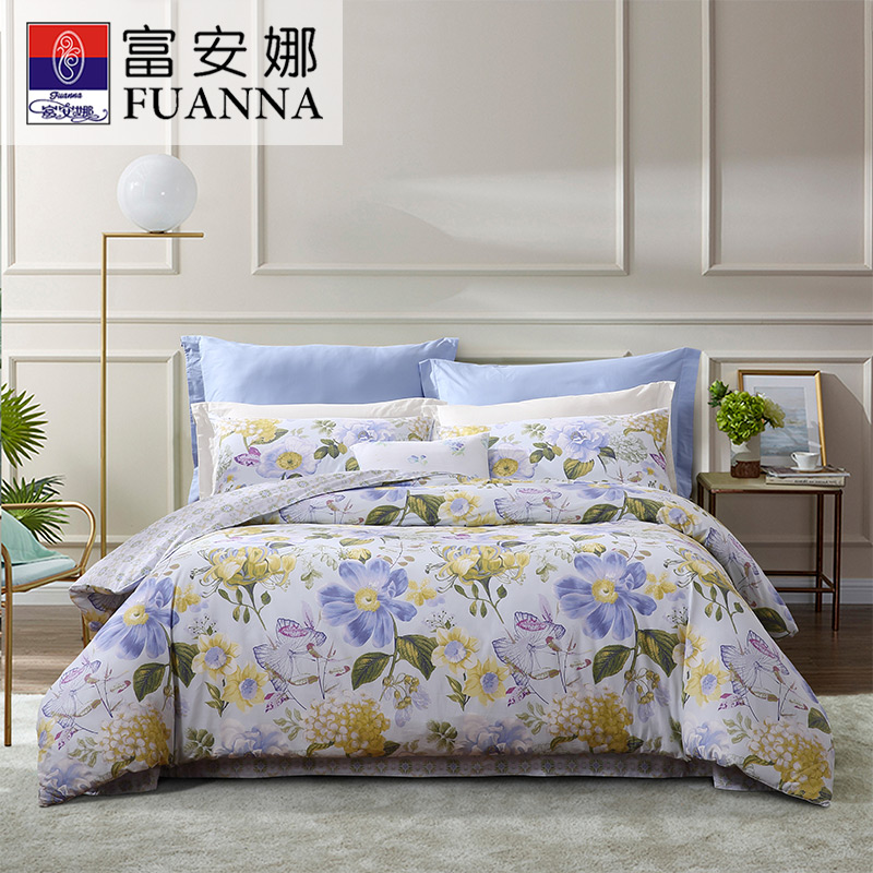 春之物语 床单四件套(被套1件床单1件枕套2件)(适合1.5米床)【40支斜纹纯棉128*68/浅蓝】