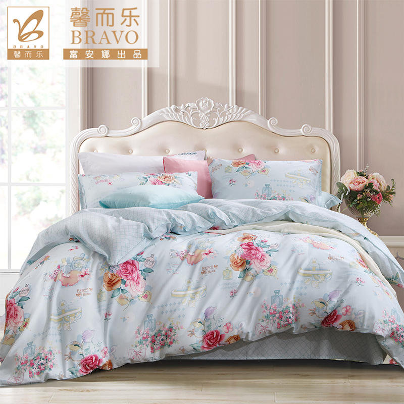 浅蓝花海 床单三件套(被套1件床单1件枕套1件)(适合1.2米床)【40支斜纹128*68/绿】