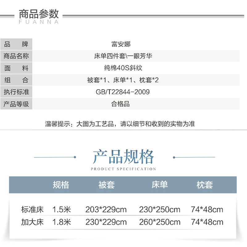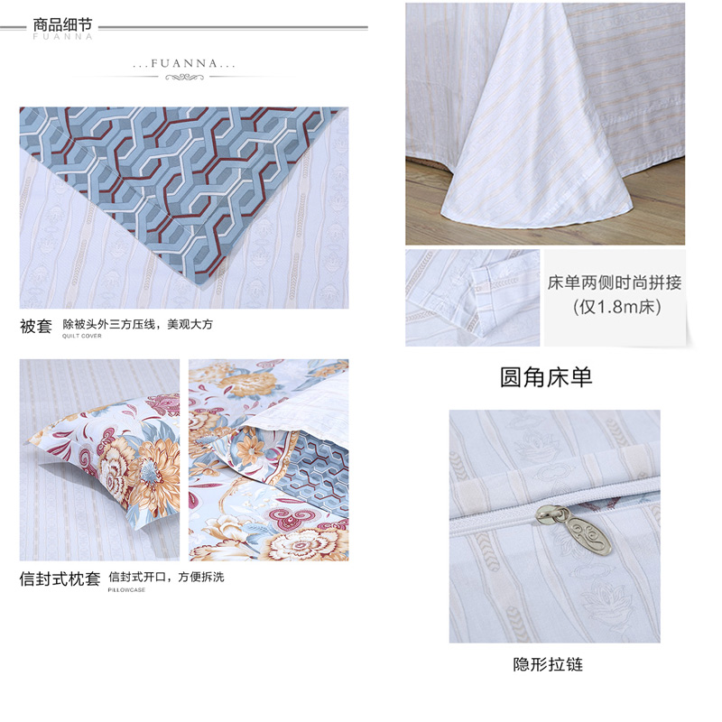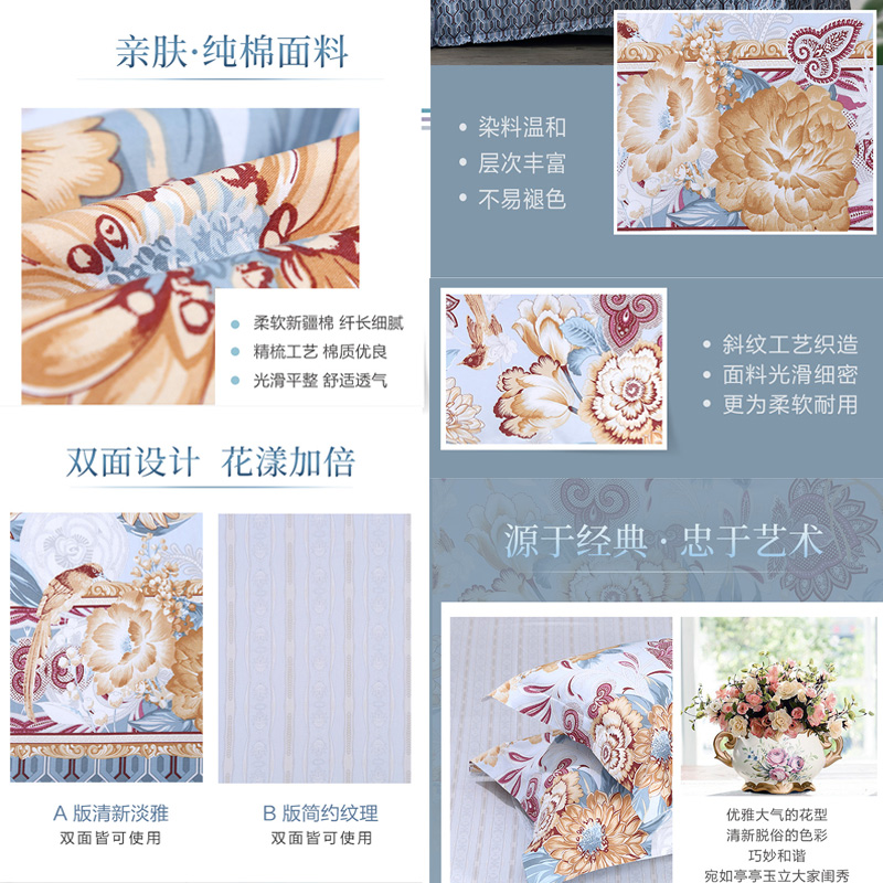 一眼芳华 床单四件套(被套1件床单1件枕套2件)(适合1.8米床)【纯棉/蓝】