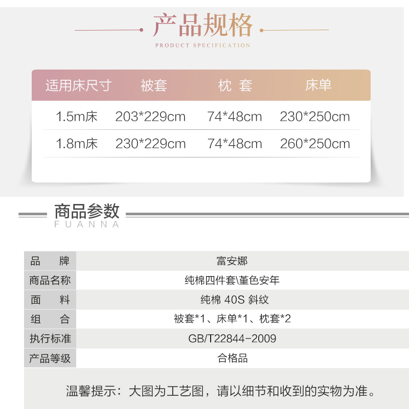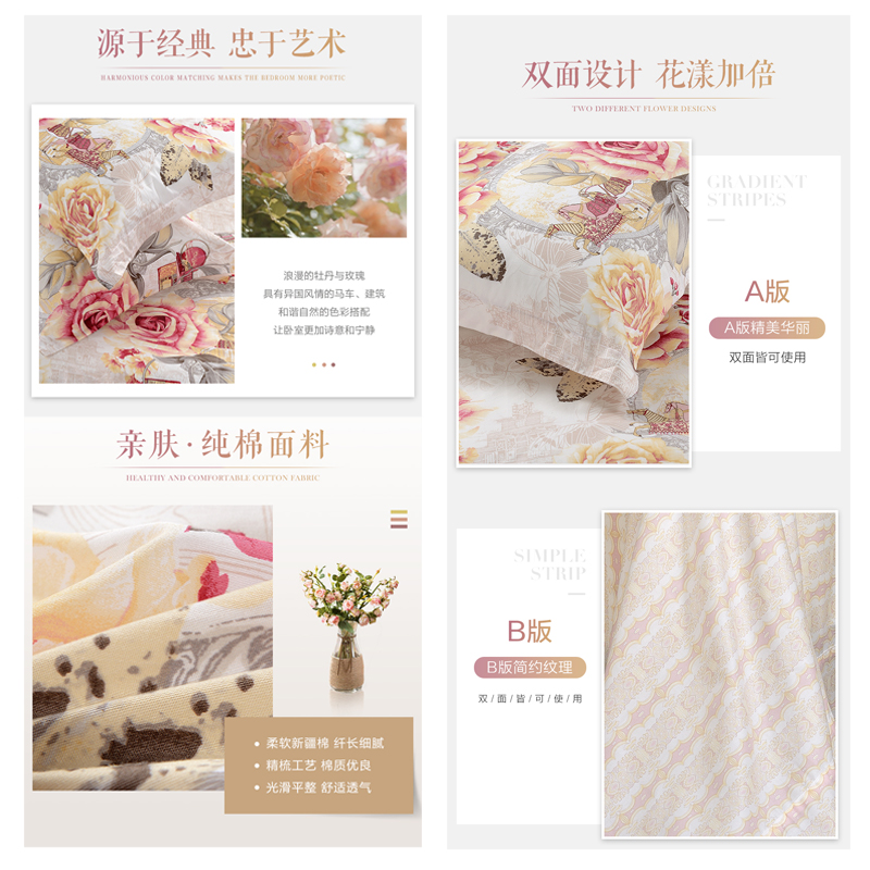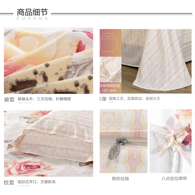 堇色安年 床单四件套(被套1件床单1件枕套2件)(适合1.8米床)【纯棉/粉】