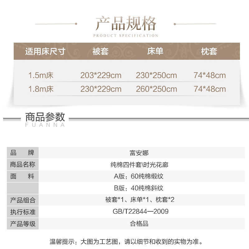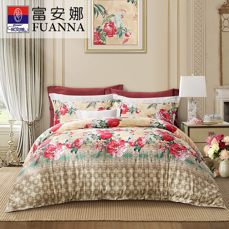 时光花廊 床单四件套(被套1件床单1件枕套2件)(适合1.5米床)【纯棉缎纹/黄】