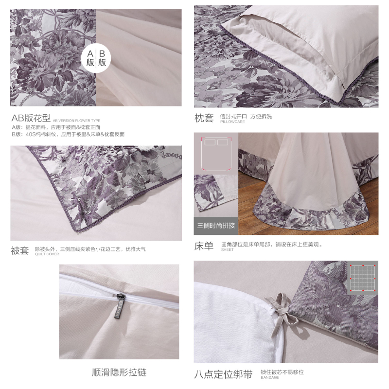 床上套件>>莫佳娜 床单四件套(被套1件床单1件枕套2件)(适合1.8米床)【A版:涤粘提花;B版:纯棉/灰】