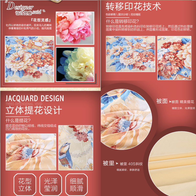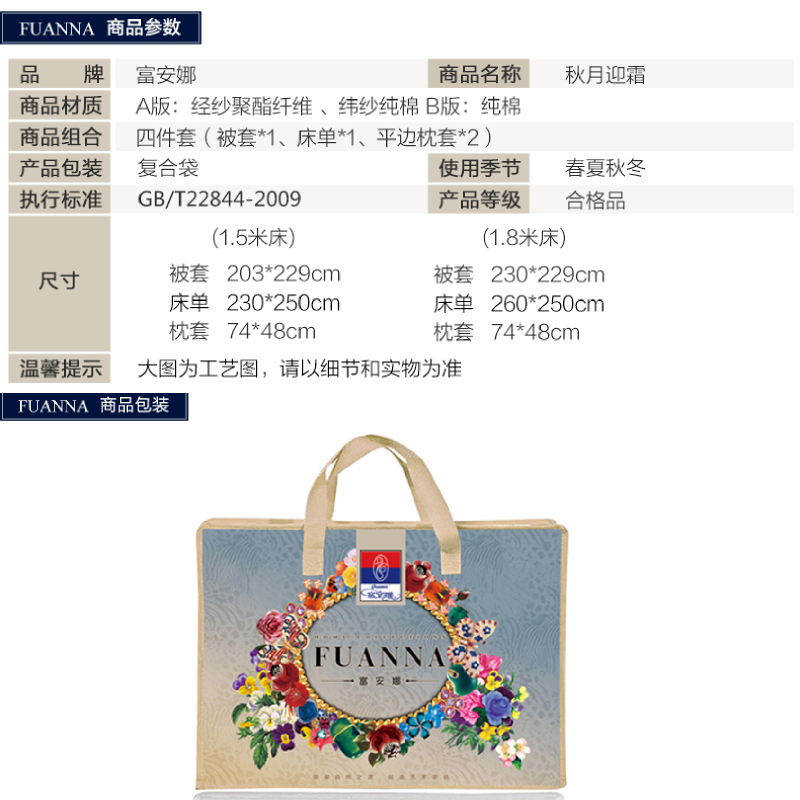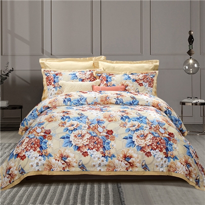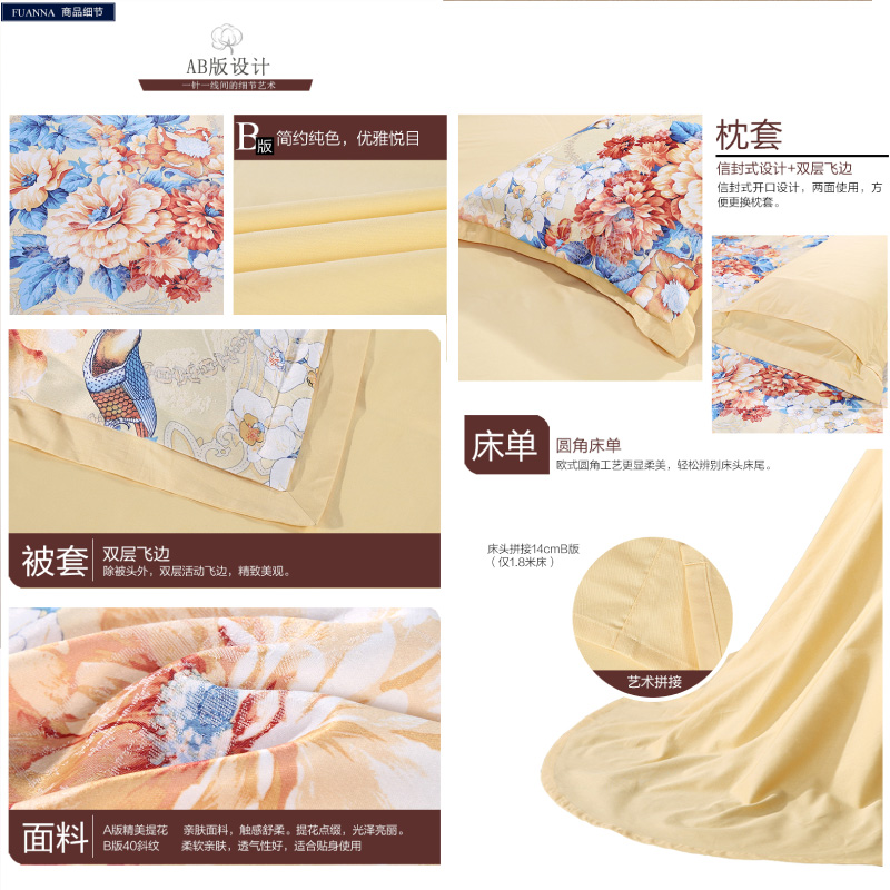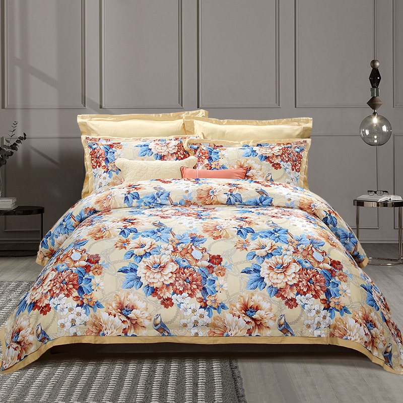 秋月迎霜 床单四件套(被套1件床单1件枕套2件)(适合1.8米床)【涤棉提花+纯棉/黄】