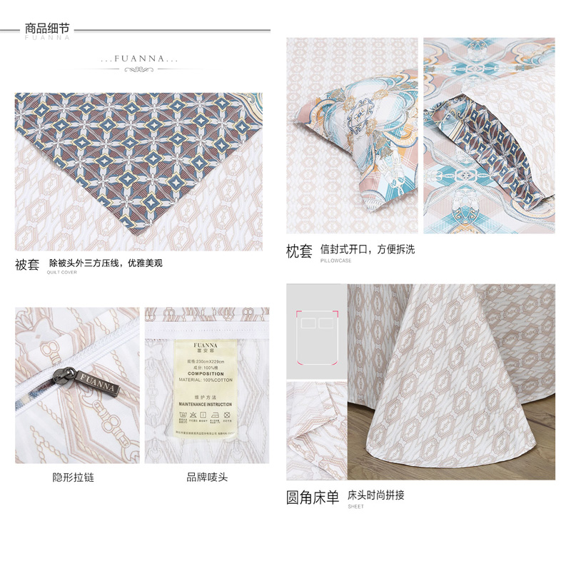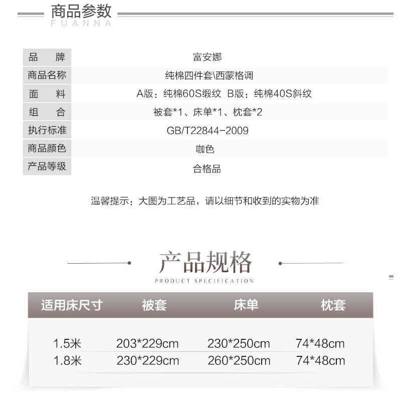 纯棉缎纹床单四件套(被套1件 床单1件枕套2件)(适合1.8米床)【纯棉缎纹/咖啡】