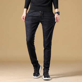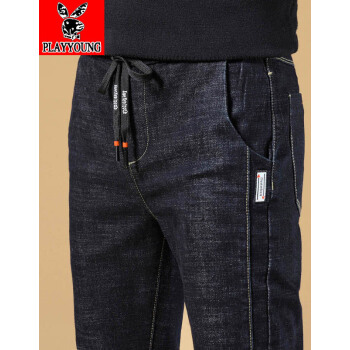 PLAYYOUNG 牛仔裤男修身夏季休闲裤男士薄款夏天长裤子直筒大码春秋韩版潮流潮牌百搭 326黑色-常规款 31