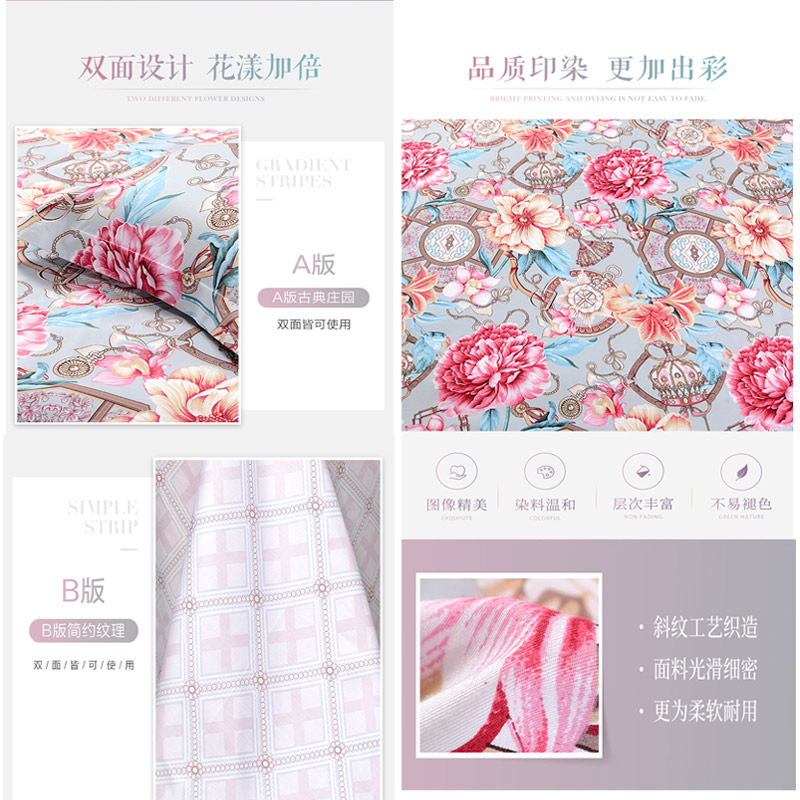 帕丁雅克 床单四件套(被套1件床单1件枕套2件)(适合1.8米床)【40支纯棉/花色】