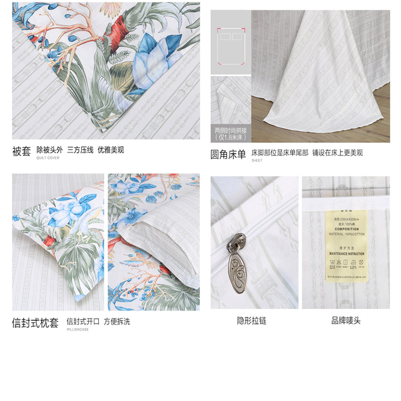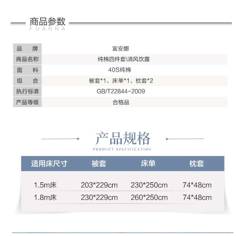 清风饮露 床单四件套(被套1件床单1件枕套2件)(适合1.5米床)【40支纯棉/绿】