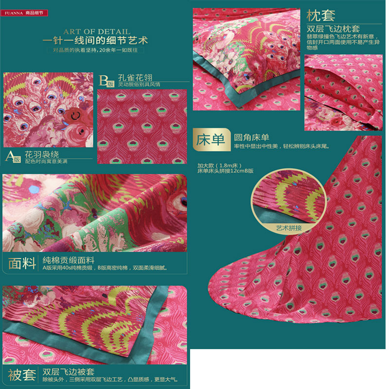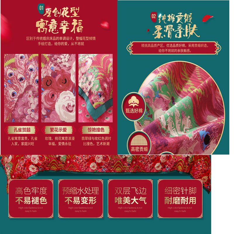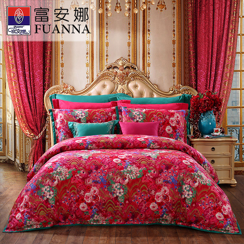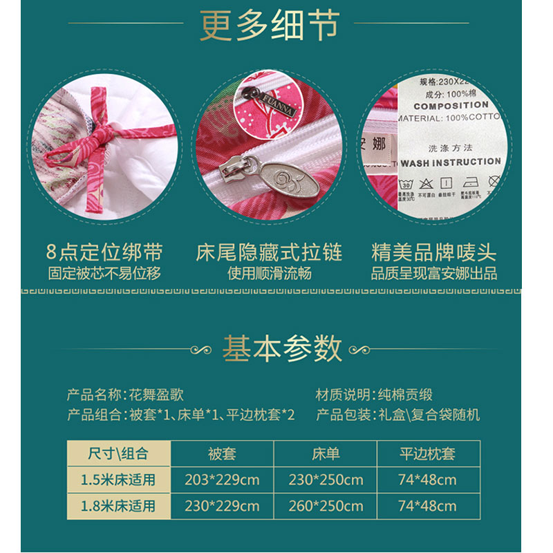 花舞盈歌 床单四件套(被套1件床单1件枕套2件)(适合1.5米床)【纯棉缎纹/红】
