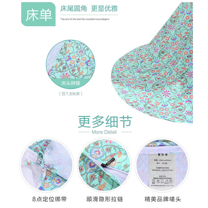 悦玺神殿 床单四件套(被套1件床单1件枕套2件)(适合1.5米床)【60支长绒棉/绿】