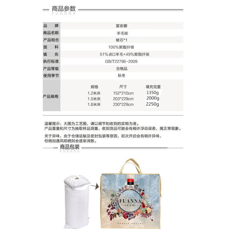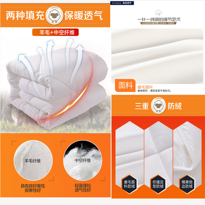 进口混合羊毛被(被芯一件)(适合1.8米床)【填充物:进口羊毛+聚酯纤维/白】