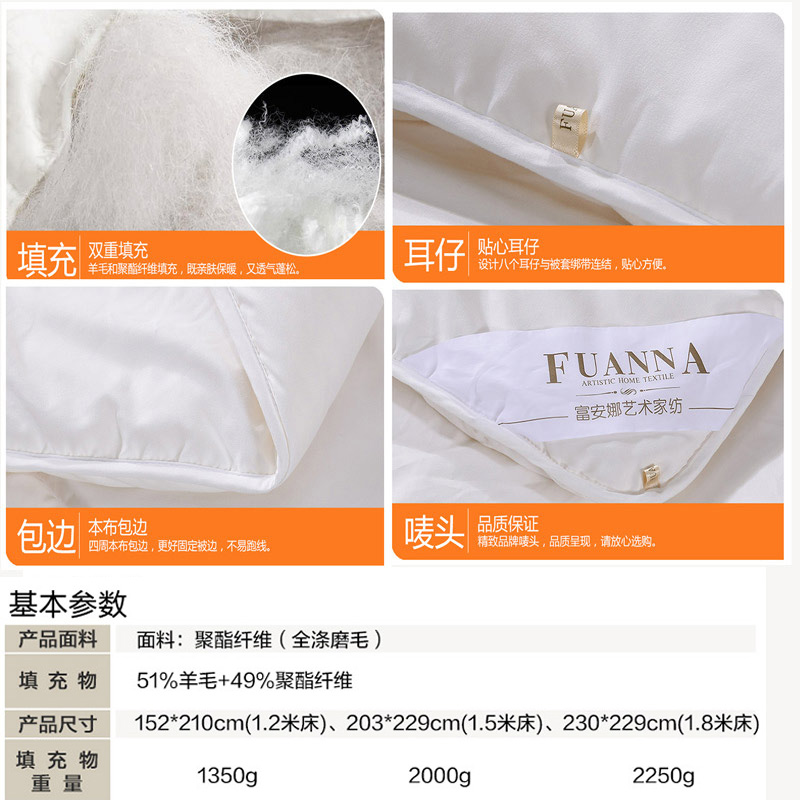 进口混合羊毛被 (被芯一件)(适合1.2米床)【填充物:进口羊毛+聚酯纤维/白】