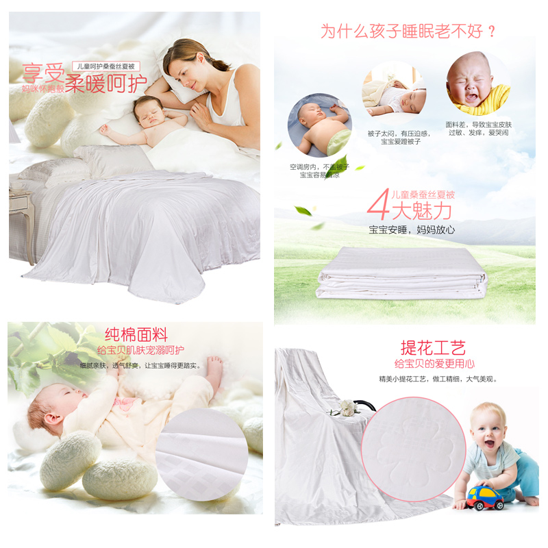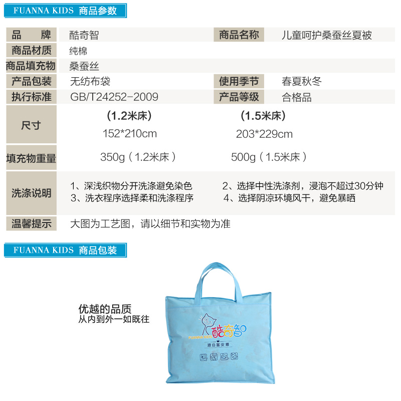 儿童呵护桑蚕丝夏被(被芯1件)(适合1.5米床)【面料:纯棉;填充:桑蚕丝/白】