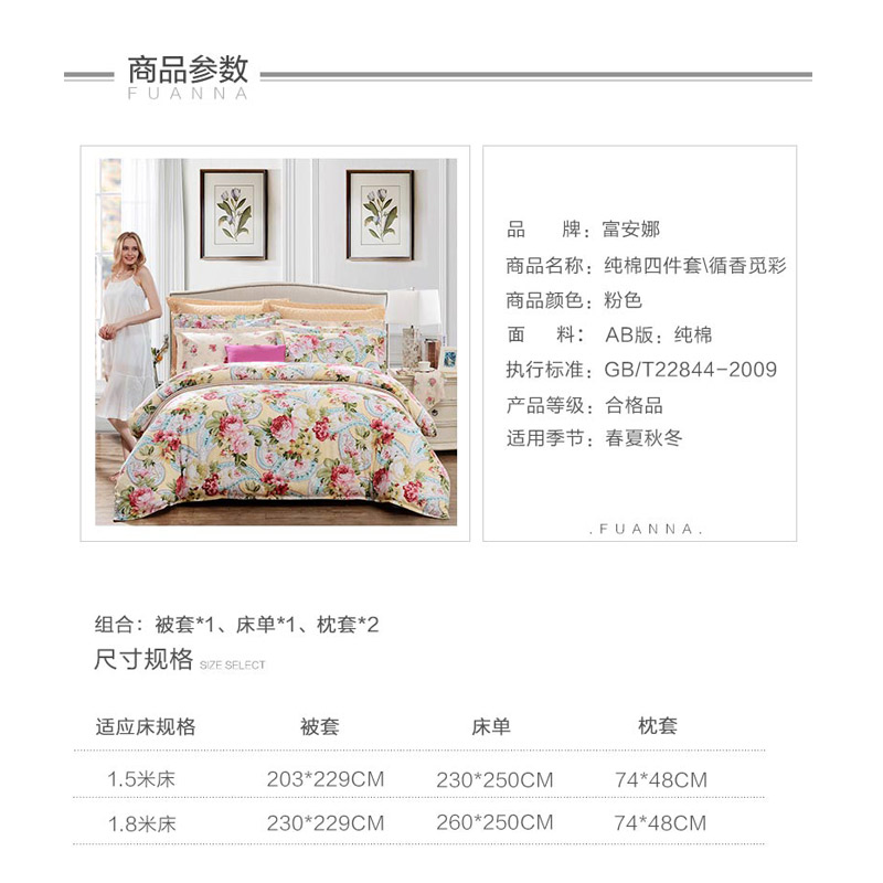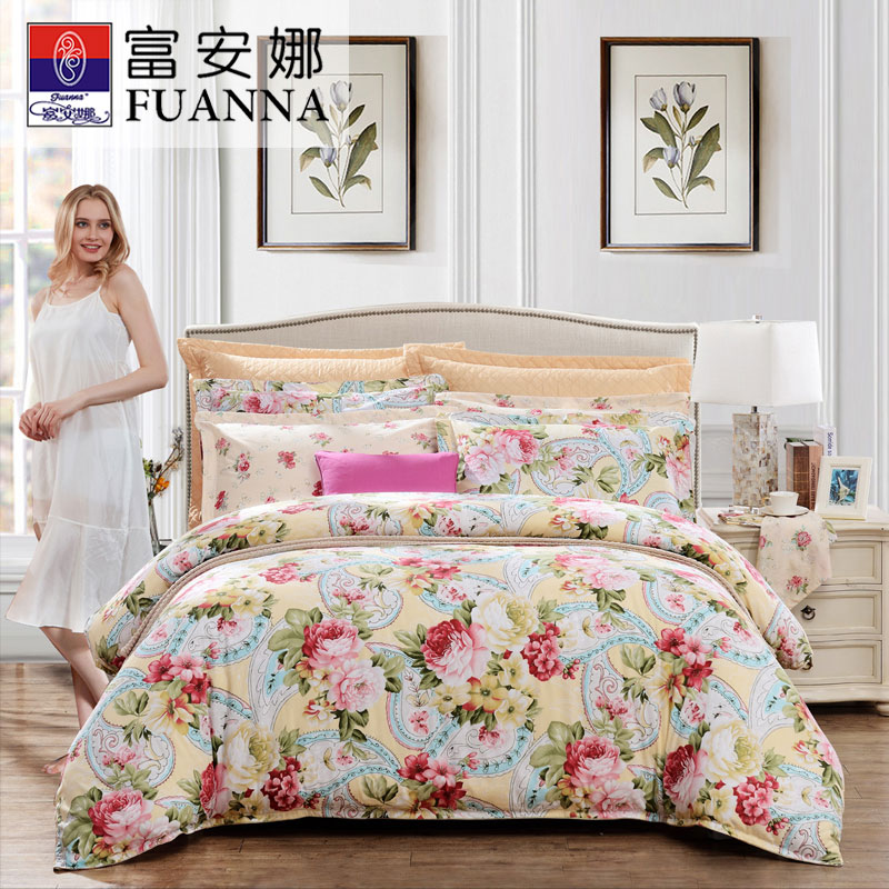 循香觅彩 床单四件套(被套一件床单一件枕套两件)(适用1.8米床)【纯棉/黄】