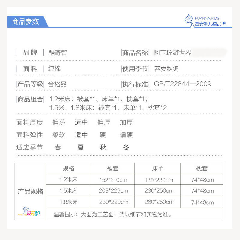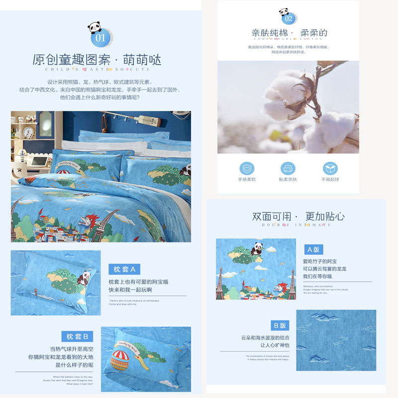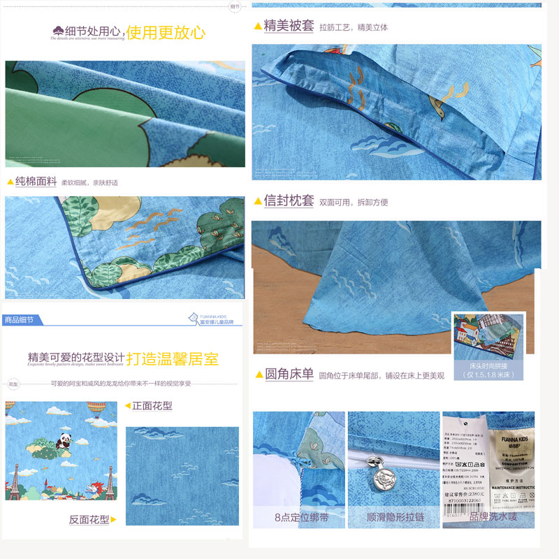 阿宝环游世界 床单三件套(适用1.2米床)(被套1件床单1件枕套1件)【纯棉/蓝】
