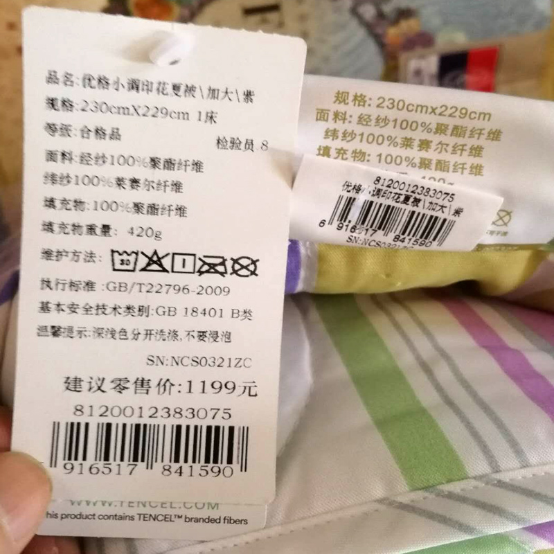 优格小调涤天丝印花夏被(夏被一件)(适合1.8米床)【面料:聚酯纤维+莱赛尔纤维;填充:聚酯纤维/紫】