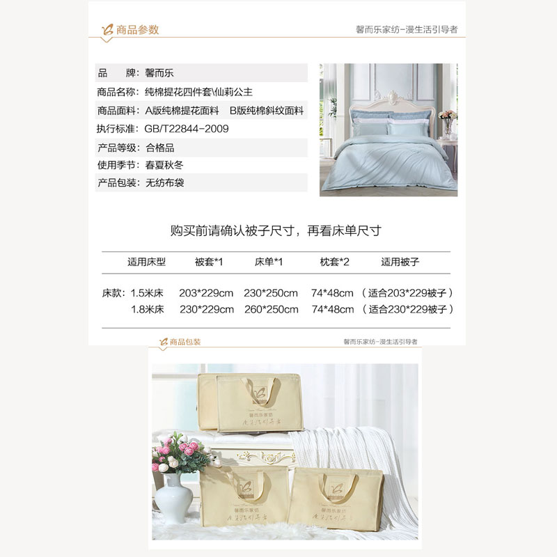 仙莉公主四件套(被套一件床单一件枕套两件)(适用1.8米床)【100%棉/蓝】