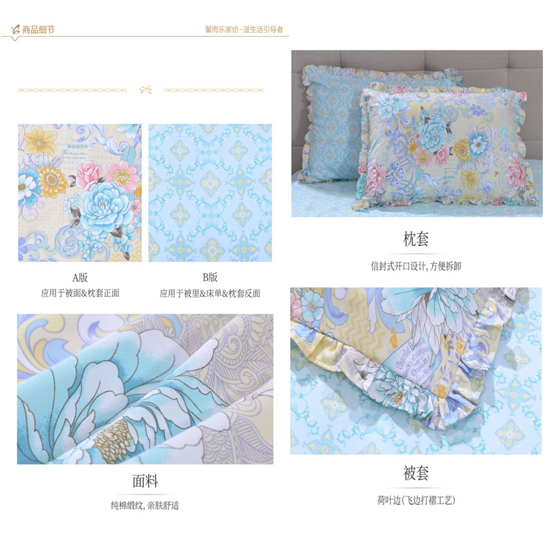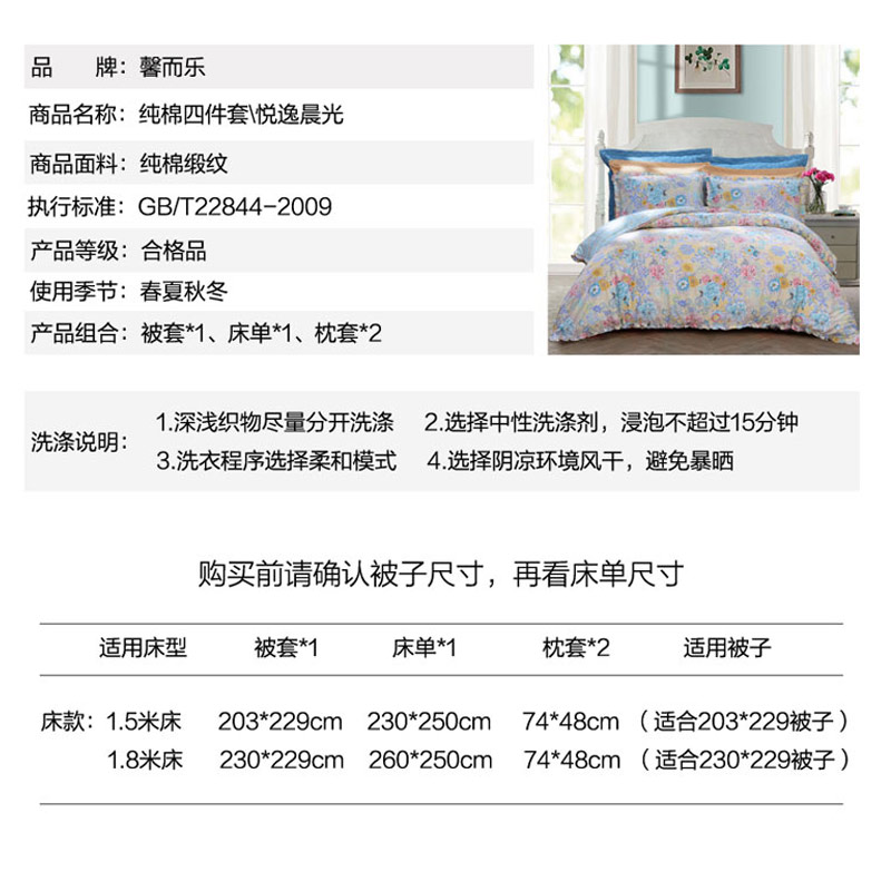 印花舒适四件套(被套一件床单一件枕套两件)(适用1.8-2.0米床)【纯棉缎纹/花色】
