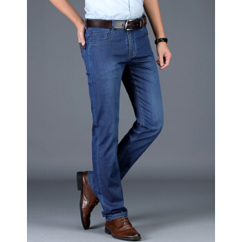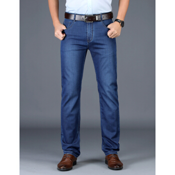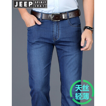 吉普JEEP牛仔裤男直筒薄款裤子男2020夏季新款商务休闲男装长裤微弹力男裤 2180#薄款 蓝色 33(腰围2尺5)