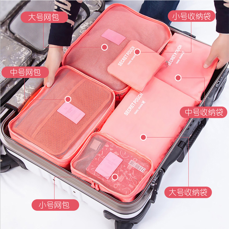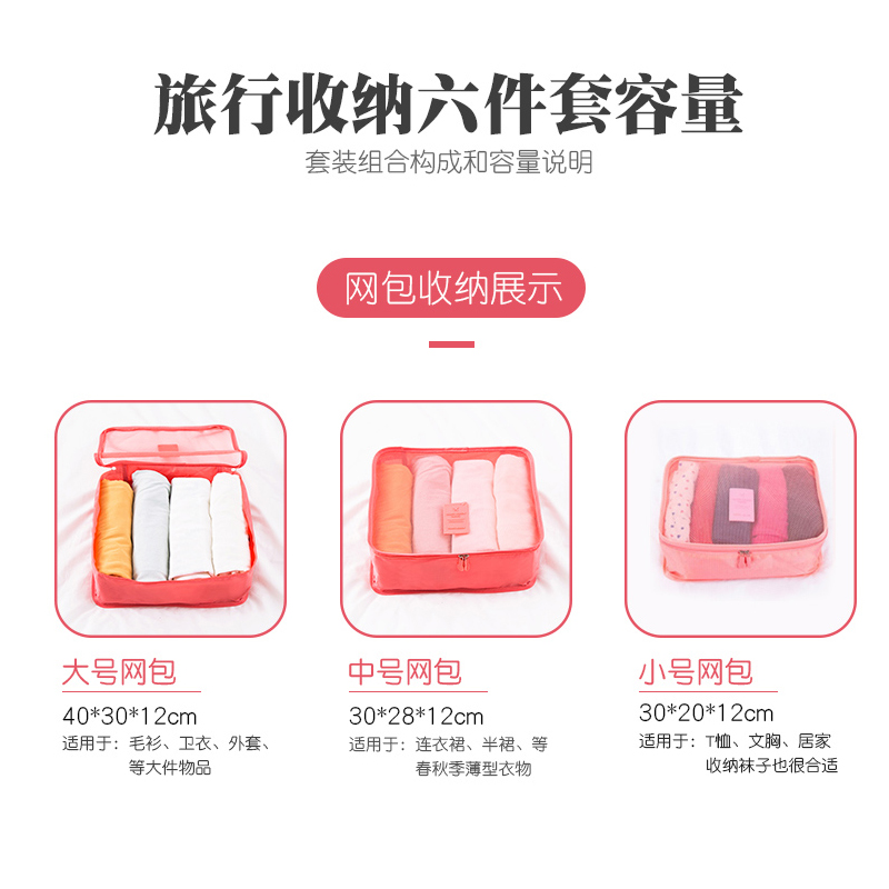 旅行收纳袋六件套【涤纶/嫩粉色】