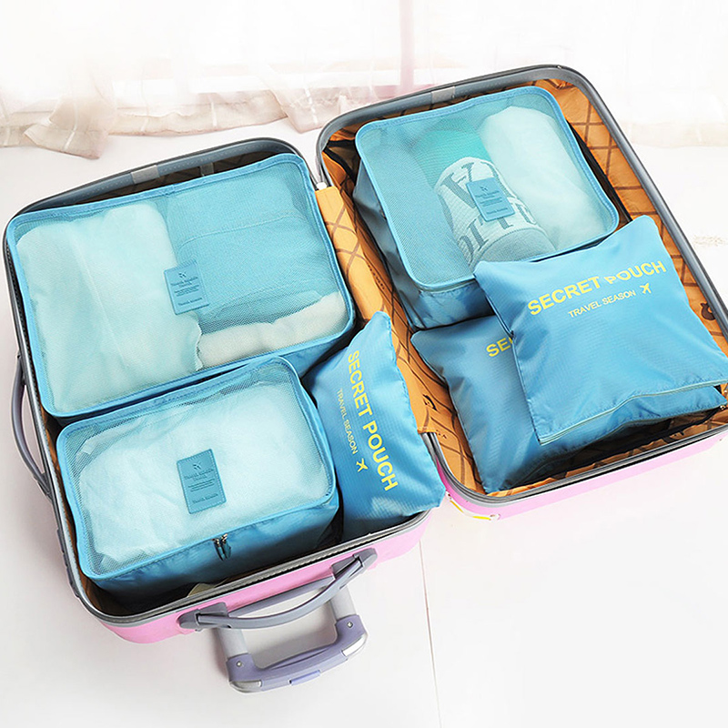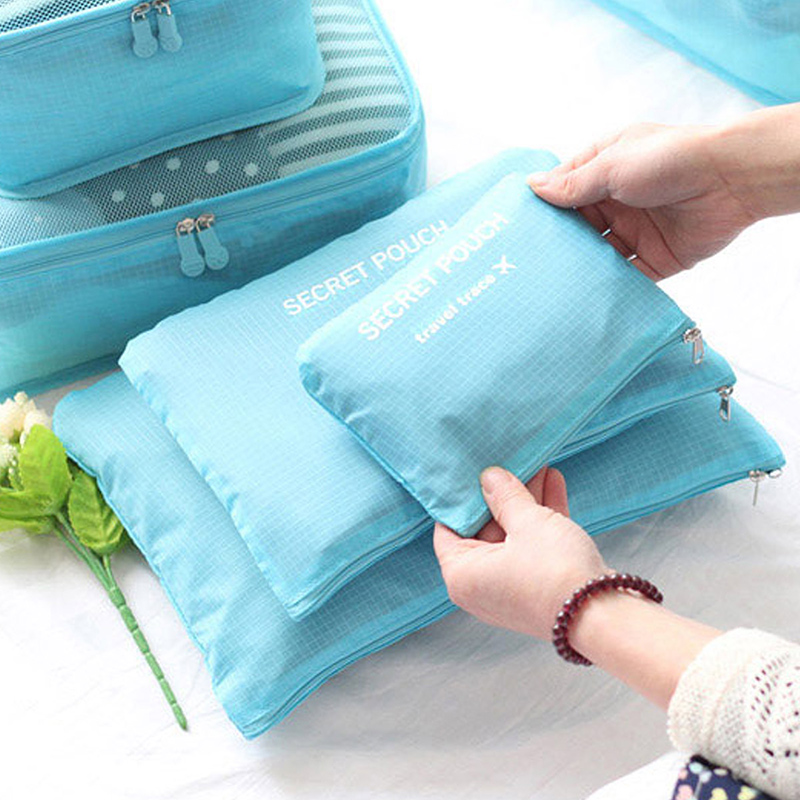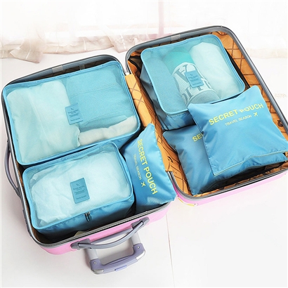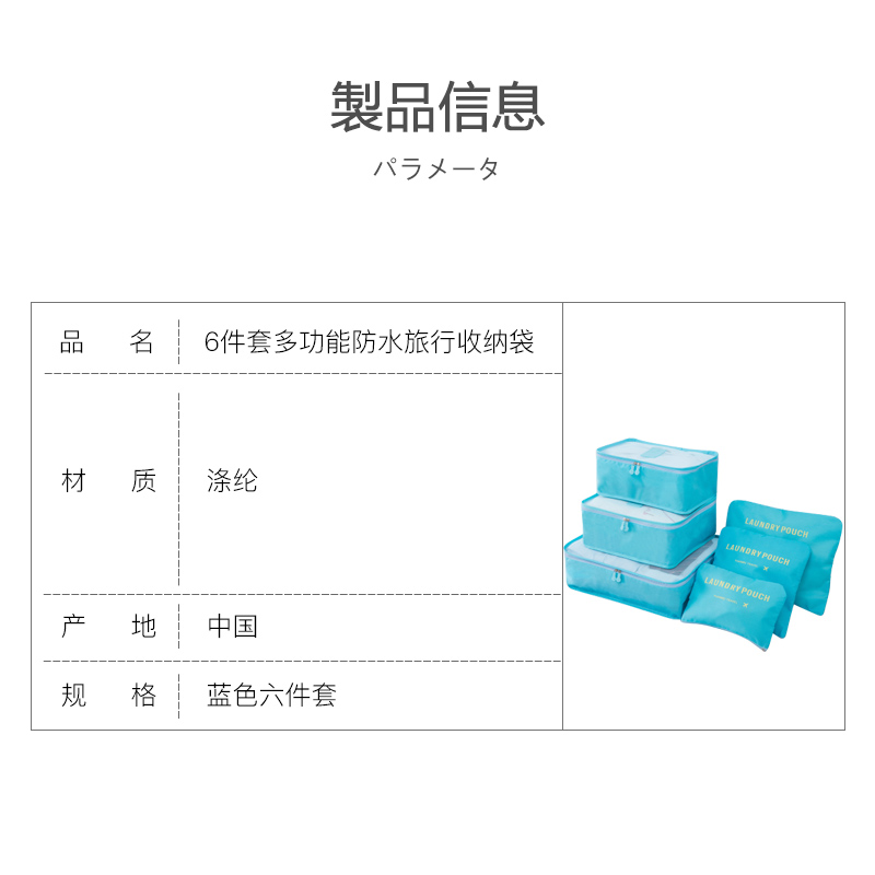 【6件套】旅行箱多功能防水旅行收纳袋【涤纶/天蓝色】